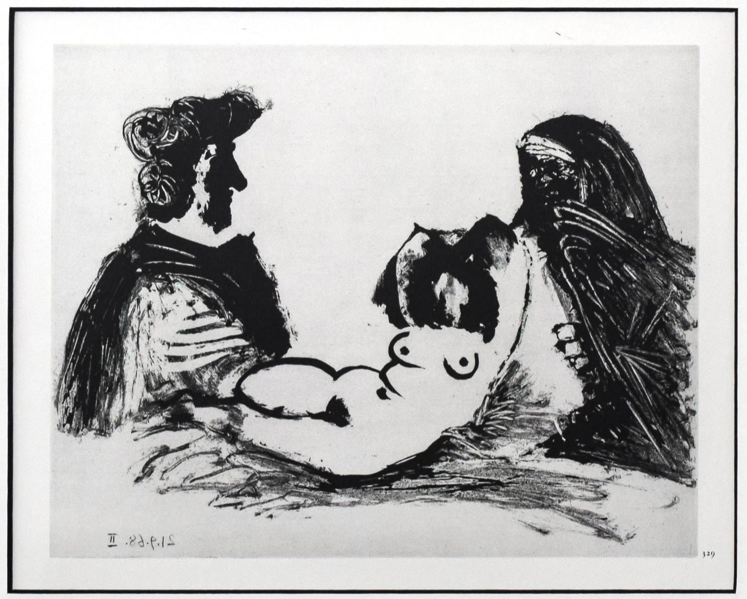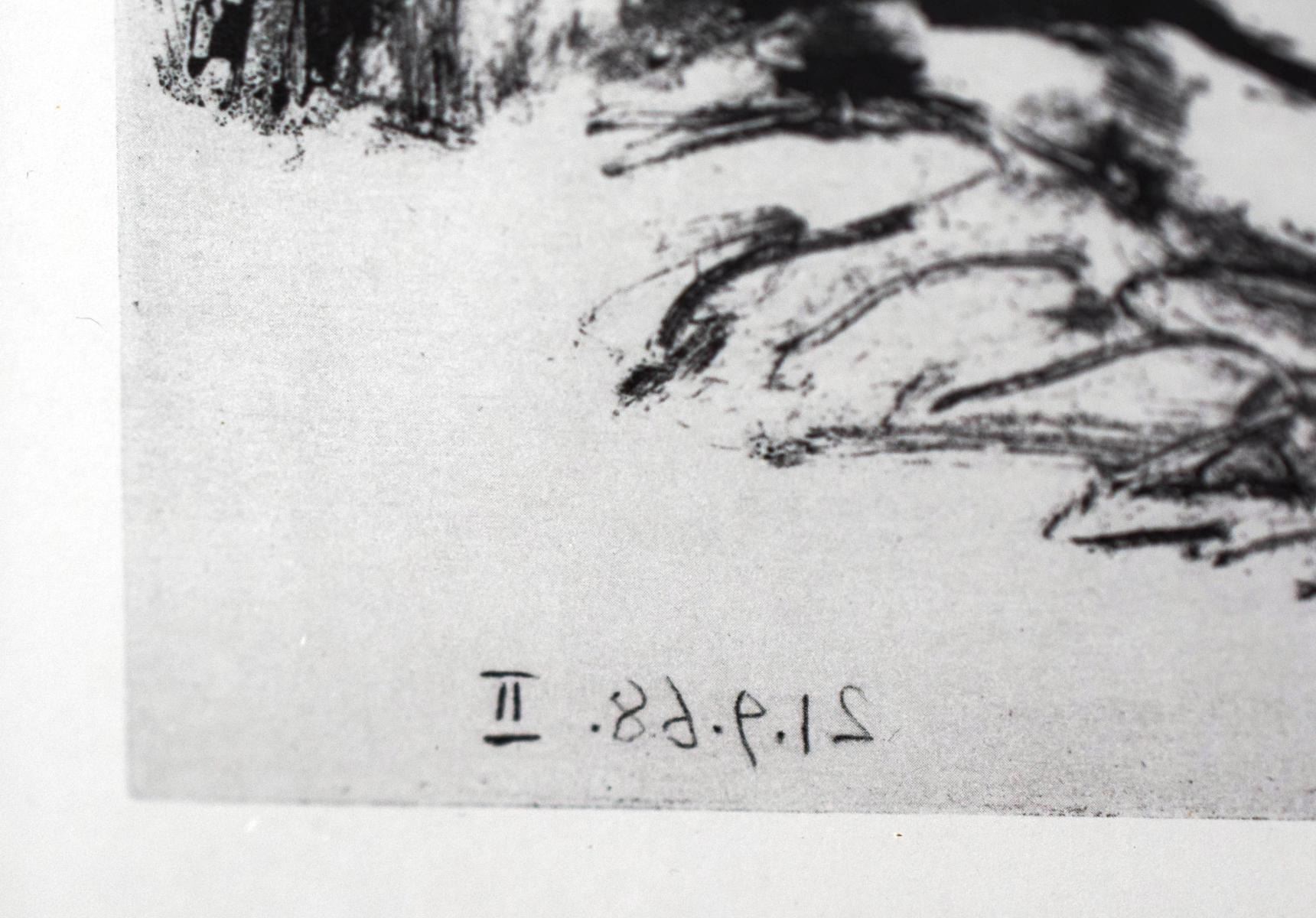 Artist: Pablo Picasso. Medium: Offset Lithograph. Title: From The 347 Series. Size (Unframed): 8.5" x 11". Size (Framed): 17" x 19". Additional: Custom framed. Unsigned and unnumbered. The 347 Series is a series of Gravures by the Spanish artist Pablo Picasso executed between March 16 and October 8 1968. The work was Picasso's largest in terms of the number of individual prints in the series. It was dedicated to his friend Jamie Sabartes. No name was given by Picasso to the series. The 347 series was first displayed at the Art Institute of Chicago and Paris's Gallerie Lousie Leris in 1970.This framed reproduction of an original gravure in the series was published by Random House inc in the USA and printed in Switzerland.. Reference# 15935.