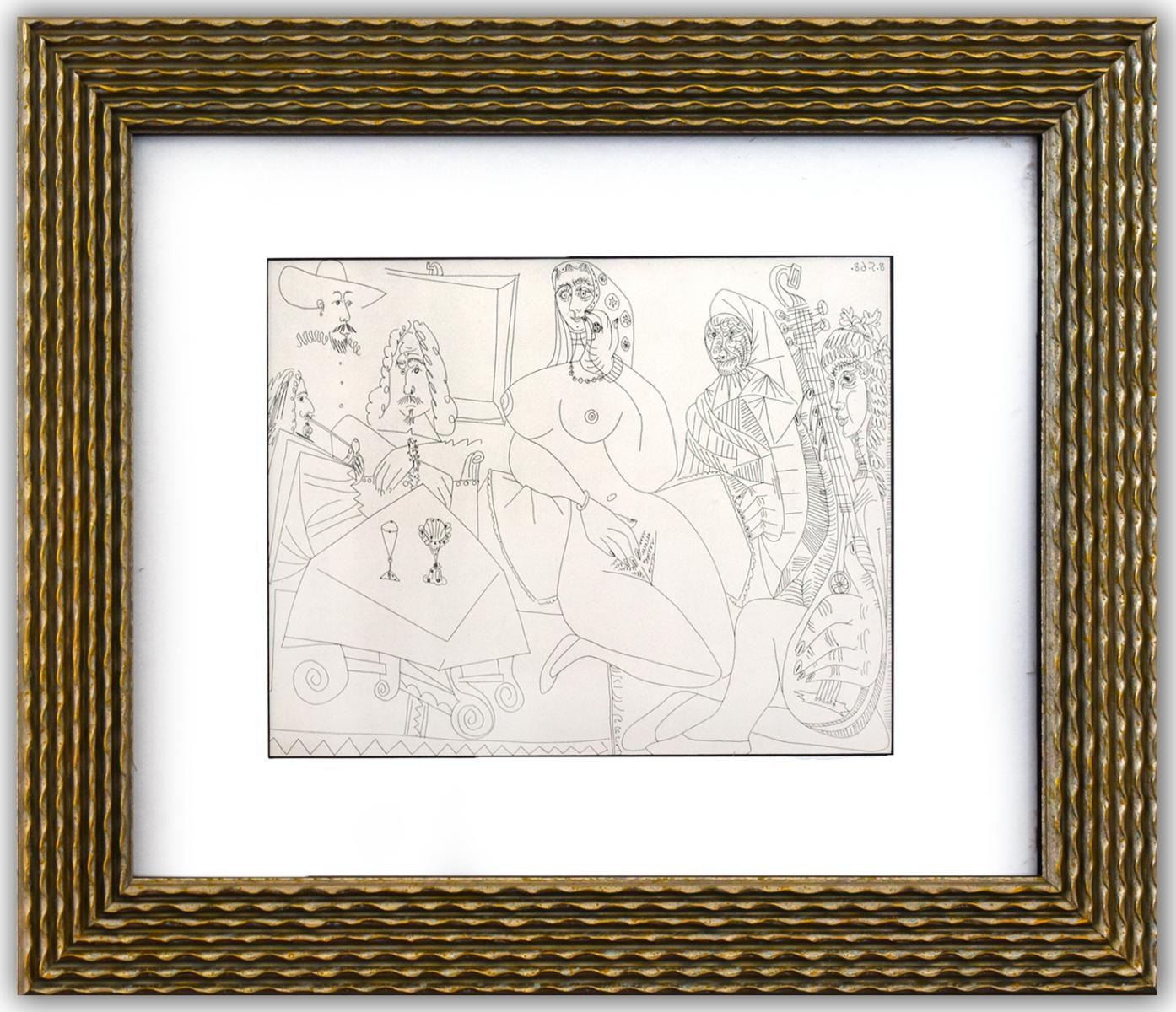 Artist: Pablo Picasso. Medium: Offset Lithograph. Title: From The 347 Series. Size (Unframed): 10" x 13". Measures approx. (Framed): 21" x 25". Additional: Custom framed. Unsigned and unnumbered. The 347 Series is a series of Gravures by the Spanish artist Pablo Picasso executed between March 16 and October 8 1968. The work was Picasso's largest in terms of the number of individual prints in the series. It was dedicated to his friend Jamie Sabartes. No name was given by Picasso to the series. The 347 series was first displayed at the Art Institute of Chicago and Paris's Gallerie Lousie Leris in 1970.This framed reproduction of an original gravure in the series was published by Random House inc in the USA and printed in Switzerland.. Reference# 16985.