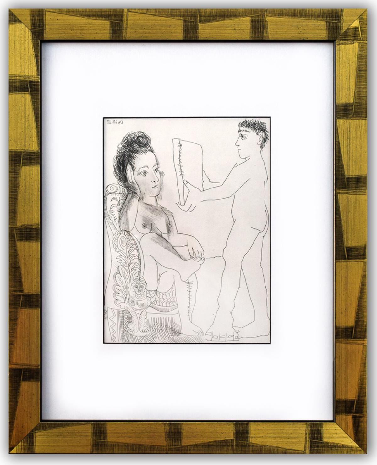 Artist: Pablo Picasso. Medium: Offset Lithograph. Title: From The 347 Series. Size (Unframed): 10" x 8". Measures approx. (Framed): 21" x 17". Additional: Custom framed. Unsigned and unnumbered. The 347 Series is a series of Gravures by the Spanish artist Pablo Picasso executed between March 16 and October 8 1968. The work was Picasso's largest in terms of the number of individual prints in the series. It was dedicated to his friend Jamie Sabartes. No name was given by Picasso to the series. The 347 series was first displayed at the Art Institute of Chicago and Paris's Gallerie Lousie Leris in 1970.This framed reproduction of an original gravure in the series was published by Random House inc in the USA and printed in Switzerland.. Reference# 16978.