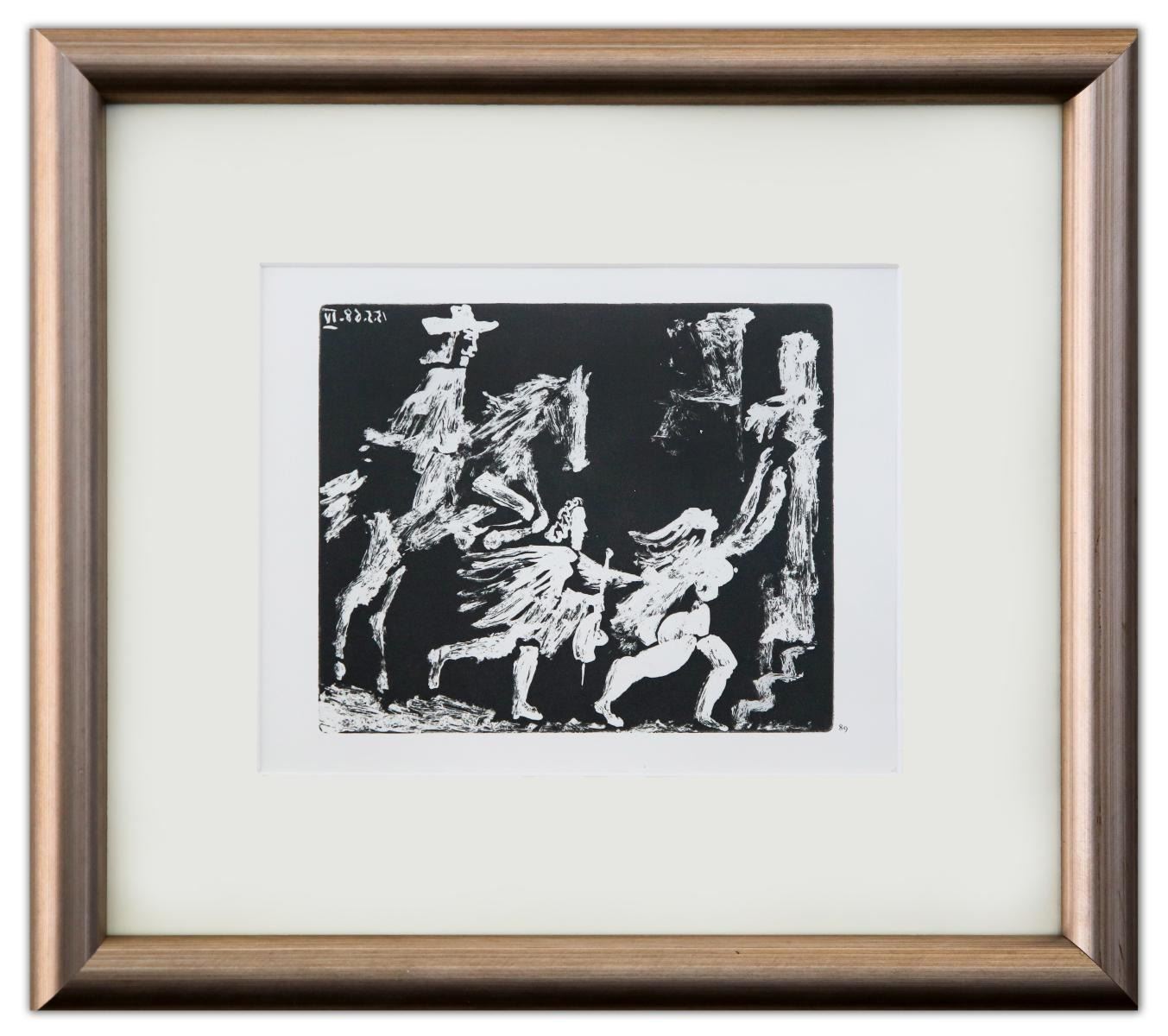 Artist: Pablo Picasso. Medium: Offset Lithograph. Title: From The 347 Series. Size (Unframed): 7" x 9". Measures approx. (Framed): 14" x 16". Additional: Custom framed. Unsigned and unnumbered. The 347 Series is a series of Gravures by the Spanish artist Pablo Picasso executed between March 16 and October 8 1968. The work was Picasso's largest in terms of the number of individual prints in the series. It was dedicated to his friend Jamie Sabartes. No name was given by Picasso to the series. The 347 series was first displayed at the Art Institute of Chicago and Paris's Gallerie Lousie Leris in 1970.This framed reproduction of an original gravure in the series was published by Random House inc in the USA and printed in Switzerland.. Reference# 18021.