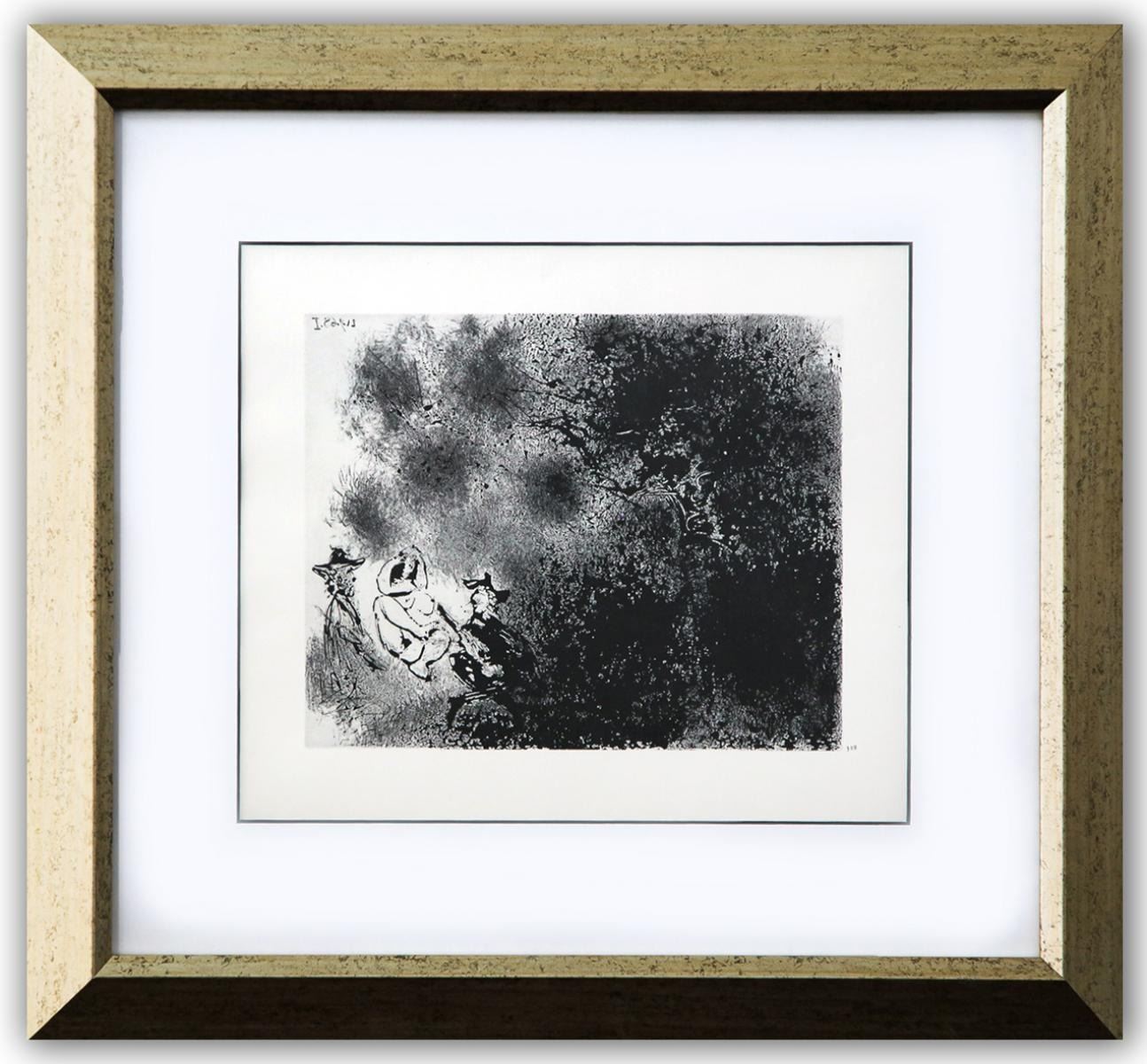 Artist: Pablo Picasso. Medium: Offset Lithograph. Title: From The 347 Series. Size (Unframed): 10" x 12". Measures approx. (Framed): 18" x 20". Additional: Custom framed. Unsigned and unnumbered. The 347 Series is a series of Gravures by the Spanish artist Pablo Picasso executed between March 16 and October 8 1968. The work was Picasso's largest in terms of the number of individual prints in the series. It was dedicated to his friend Jamie Sabartes. No name was given by Picasso to the series. The 347 series was first displayed at the Art Institute of Chicago and Paris's Gallerie Lousie Leris in 1970.This framed reproduction of an original gravure in the series was published by Random House inc in the USA and printed in Switzerland.. Reference# 18364.