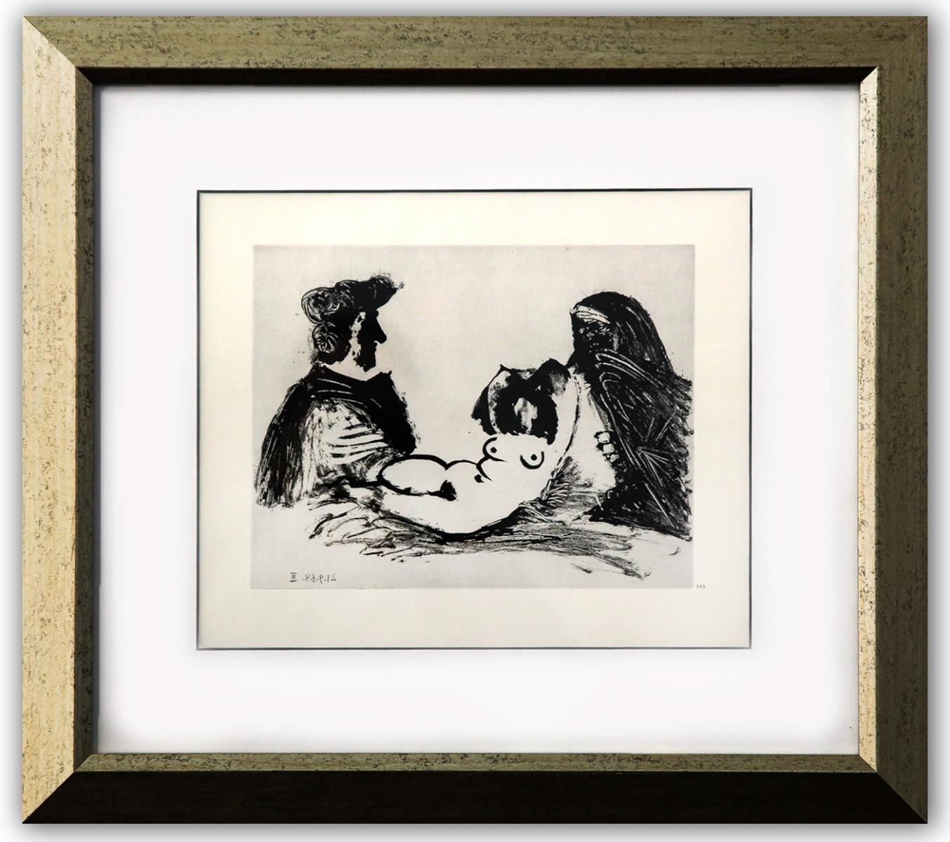 Artist: Pablo Picasso. Medium: Offset Lithograph. Title: From The 347 Series. Size (Unframed): 10" x 12". Measures approx. (Framed): 18" x 20". Additional: Custom framed. Unsigned and unnumbered. The 347 Series is a series of Gravures by the Spanish artist Pablo Picasso executed between March 16 and October 8 1968. The work was Picasso's largest in terms of the number of individual prints in the series. It was dedicated to his friend Jamie Sabartes. No name was given by Picasso to the series. The 347 series was first displayed at the Art Institute of Chicago and Paris's Gallerie Lousie Leris in 1970.This framed reproduction of an original gravure in the series was published by Random House inc in the USA and printed in Switzerland.. Reference# 18363.