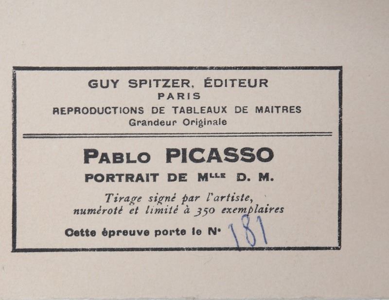 Pablo Picasso, Portrait de Mlle. D.M. (Dora Maar), Collotype