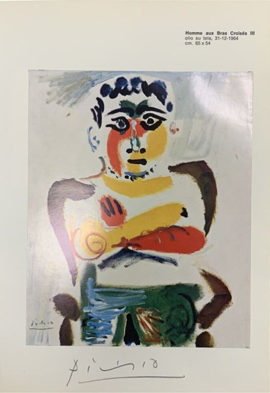 Pablo Picasso signed flat. This is a Pablo Picasso print that is adhered to a backing. 8.5x11 inches. PSJ199