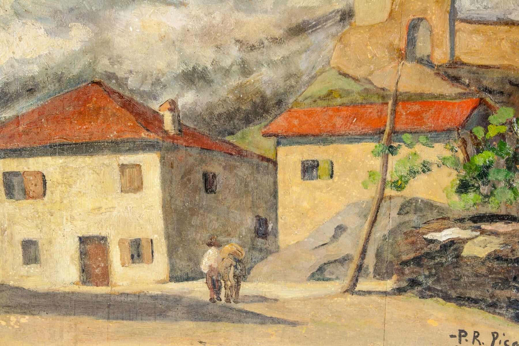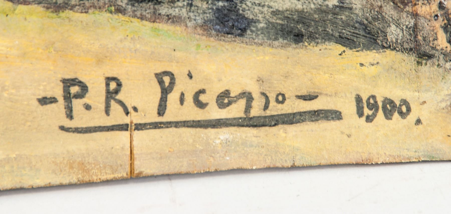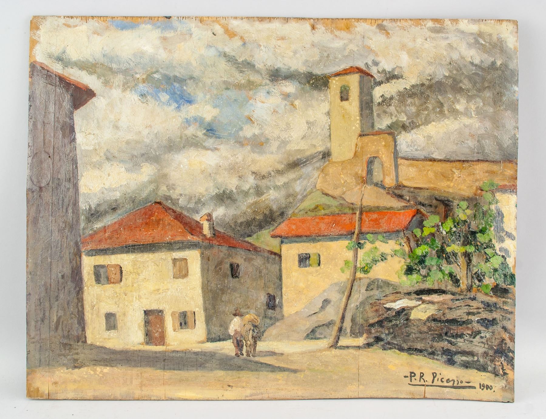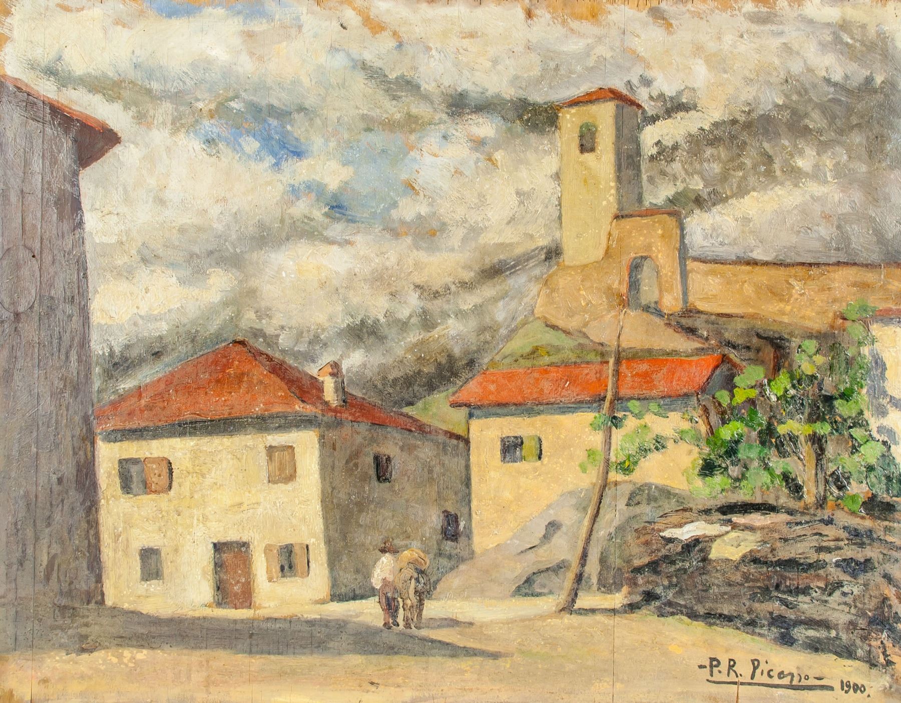 Oil on board. Featuring the scene of a town. Signed and attr. Pablo Picasso (Spanish 1881-1973) dated 1900. Signature on the lower right corner and gallery label on verso. Inscribed with date 17/3/20 on verso. 17.1 x 17.9 in. (43.5 x 45.5 cm). Provenance: Private Collection UK.
