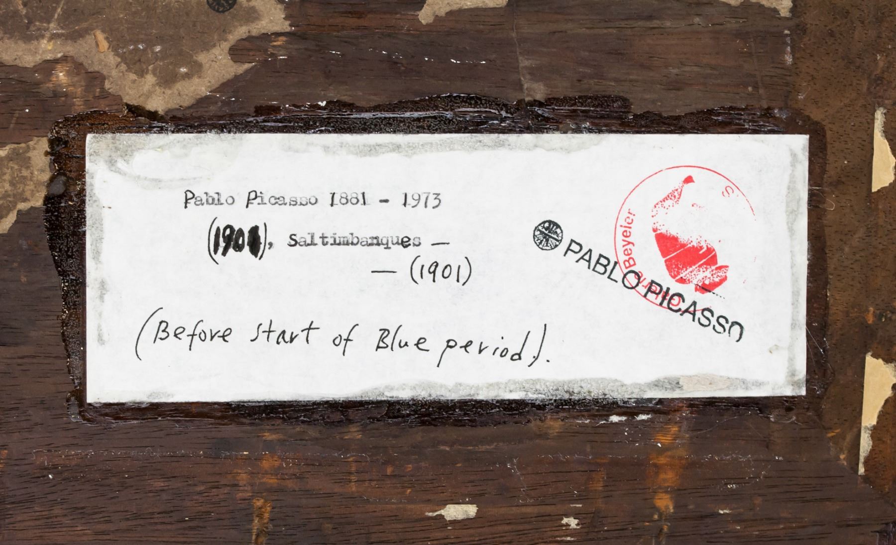 Oil on board. Featuring a portrait of figures. Signed Picasso and inscribed 1901 on the lower right and lower left corner, respectively. Label affixed to verso inscribed Pablo Picasso 1881-1973 (1901) ... (Before start of Blue Period). Stamped PABLO PICASSO on verso. Another label stamped PABLO PICASSO. Attributed to Pablo Picasso (1881-1973, Spanish). 25.5 x 20 cm (10 x 8 inches). PROVENANCE: This item has limited provenance from a private English collection