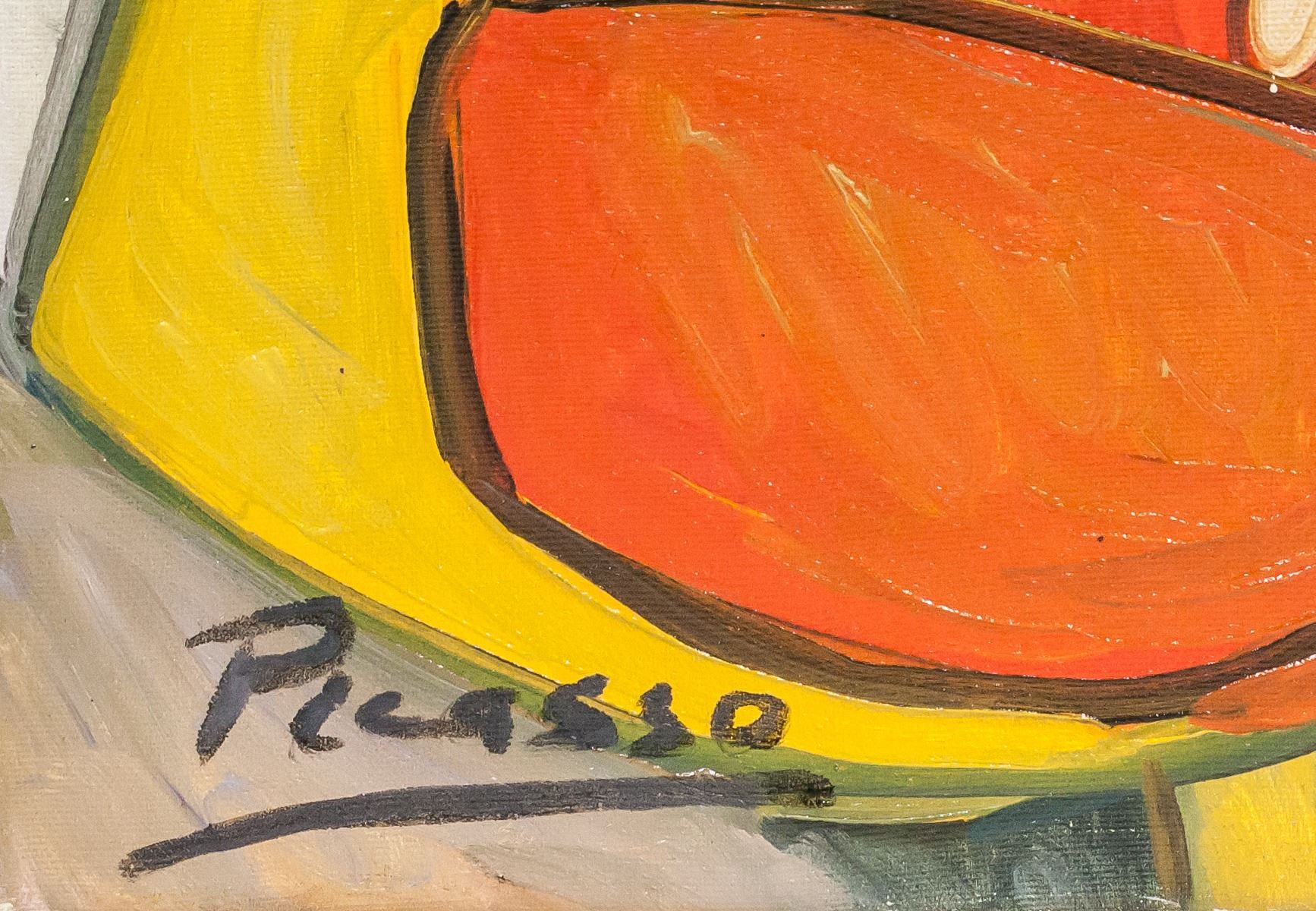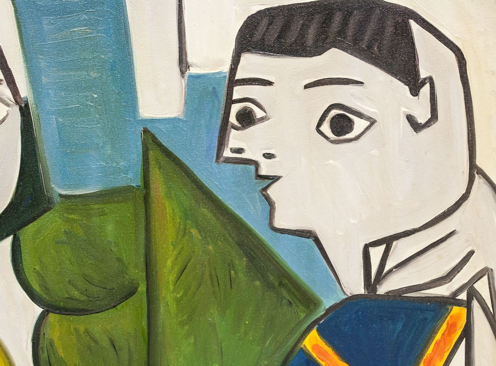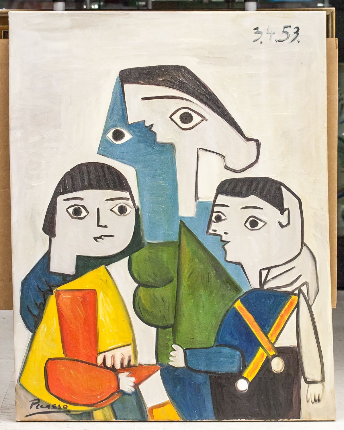 Oil on canvas. Featuring a cubist portrait. Signed Picasso on the lower left corner and inscribed 3.4.53. on the upper right corner. Inscribed verso 3.4.53.. Attributed to Pablo Picasso (1881-1973, Spanish). 90 x 70 cm (35.5 x 27.5 inches). Provenance: This lot carries limited provenance from a Toronto estate