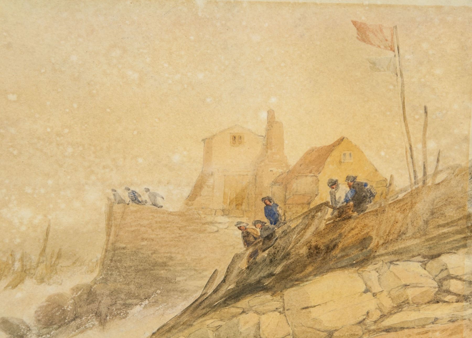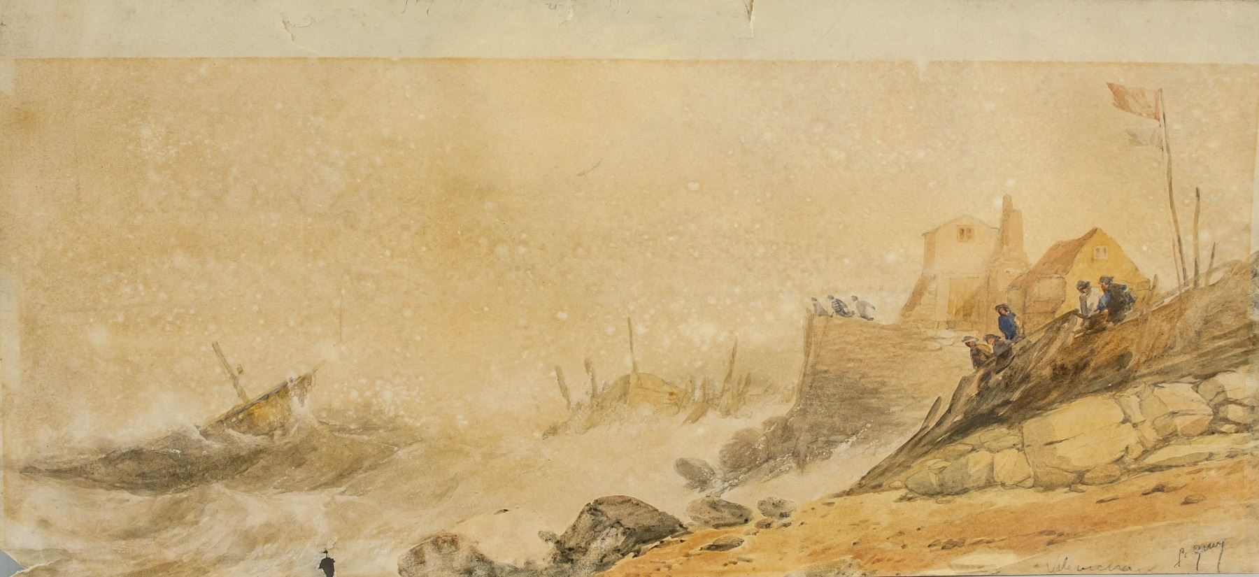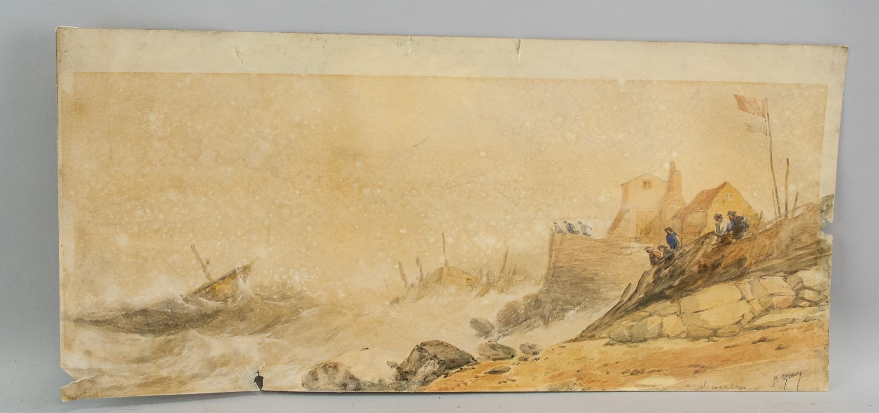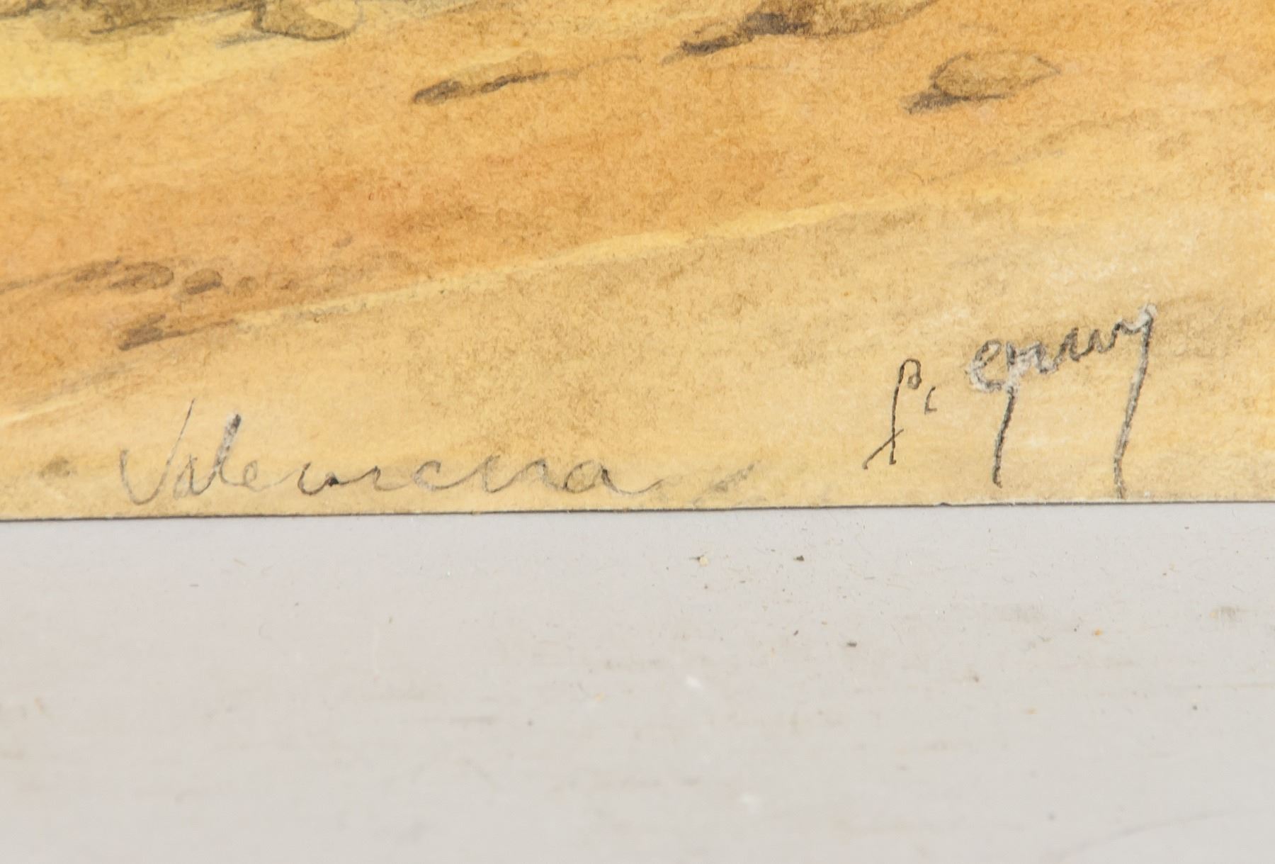 Watercolor on paper, featuring a nature landscape scene in a monochrome tone. Signed Picasso on the lower right corner. Label inscribed Pablo Picasso 1895 and stamped Galerie Vallauris on verso. Attributed to Pablo Picasso (Spanish 1881-1973). 9.8 x 21.6 in. (25 x 55 cm). PROVENANCE: Private Collection (Manchester, UK)