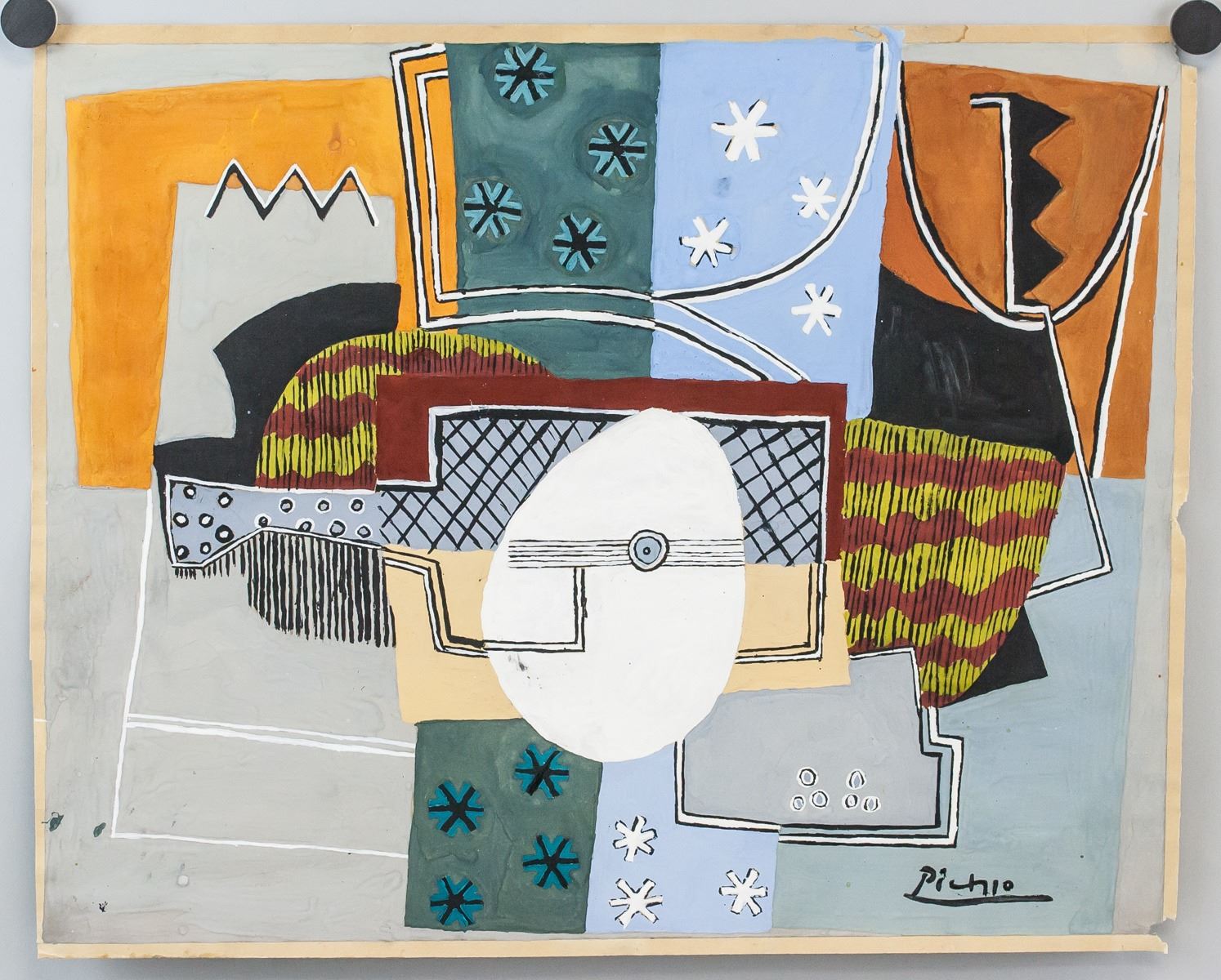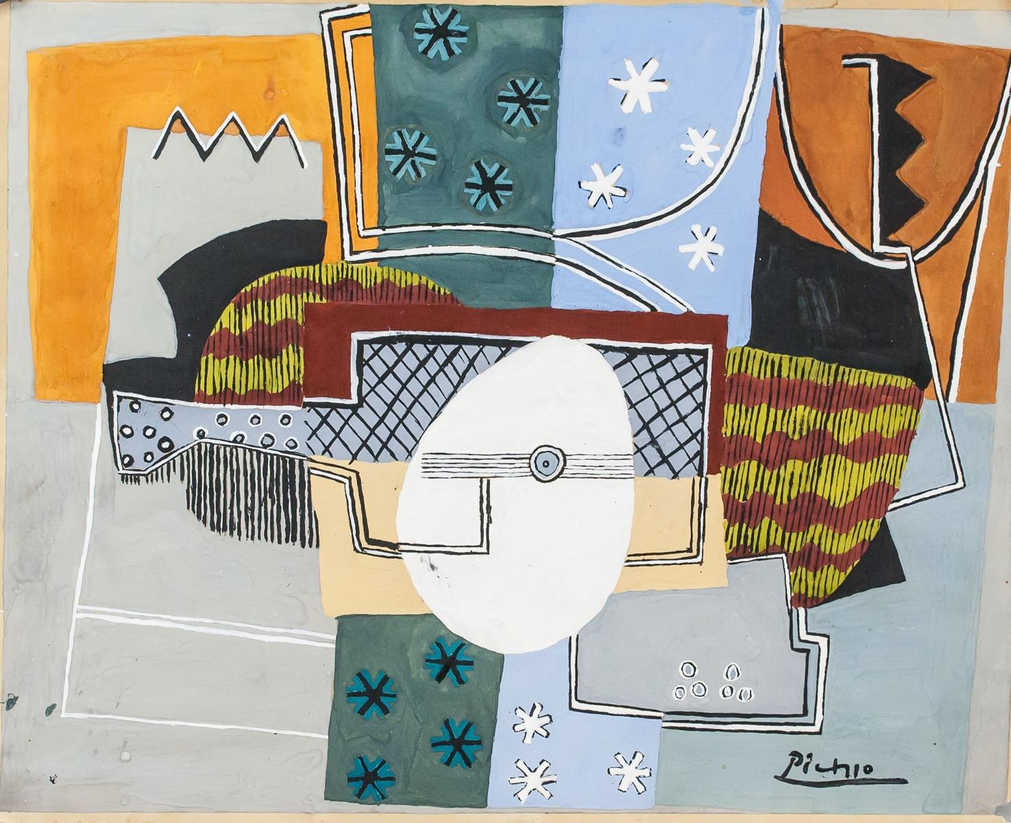 Gouache on paper. Featuring neo-classical still-life. Signed "Picasso" in the bottom right corner. "PABLO PICASSO" and "Galerie Mathias Fels PARIS" stamped on verso. Attributed to Pablo Picasso (1881-1973, Spanish). 42 x 52 cm (16.5 x 20.3 inches).