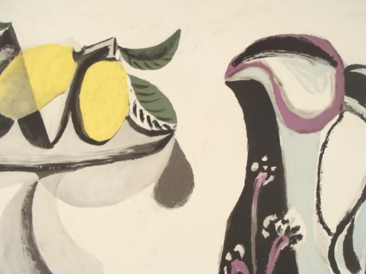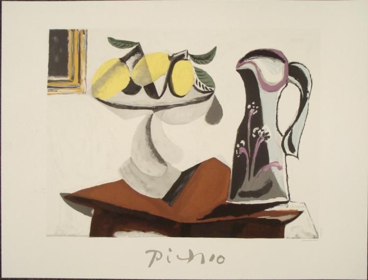 In this print we see how Picasso can take a simple still life and make something wonderful of it.Artist: Pablo Picasso Title: Still Life with Lemon Paper Size: 21 5/8 x 28 3/8 inches. Notes: Lithograph on rag paper