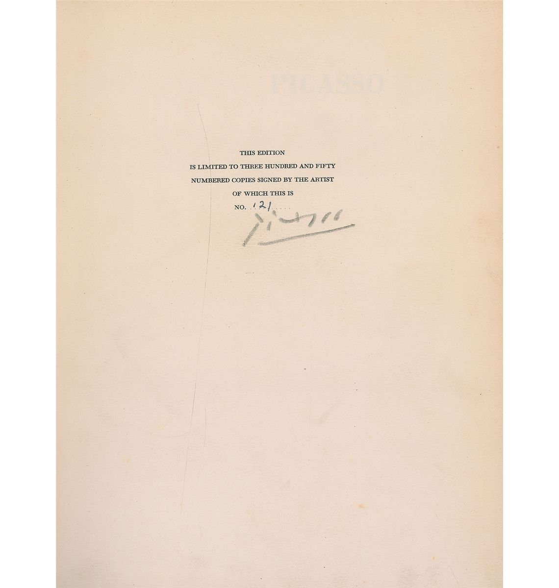 Signed book: Picasso: The Recent Years 1939–1946. Limited edition of 350 copies (this being No. 121). NY: Doubleday, 1947. Hardcover, 8.75 x 11, 211 pages. Signed in pencil on the colophon, “Picasso.” Autographic condition: Fine, with a bit of scattered l