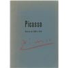 French exhibition catalog for "Picasso: Oeuvres de 1900 a 1914," published in 1954 by the Maison de la Pensee Francaise, 6 x 8.5, signed on the front cover in red artist's crayon, "Picasso." The catalog features 22 full-page black-and-white images of Picasso's early 20th century works, with an introduction by Maurice Raynal. In fine condition, with light toning and handling wear.