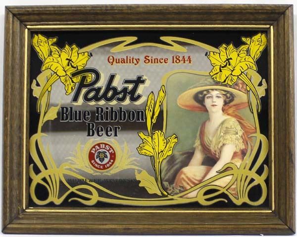 Pabst Blue Ribbon Beer Bar Mirror Advertisement, measures 11'' x 14''