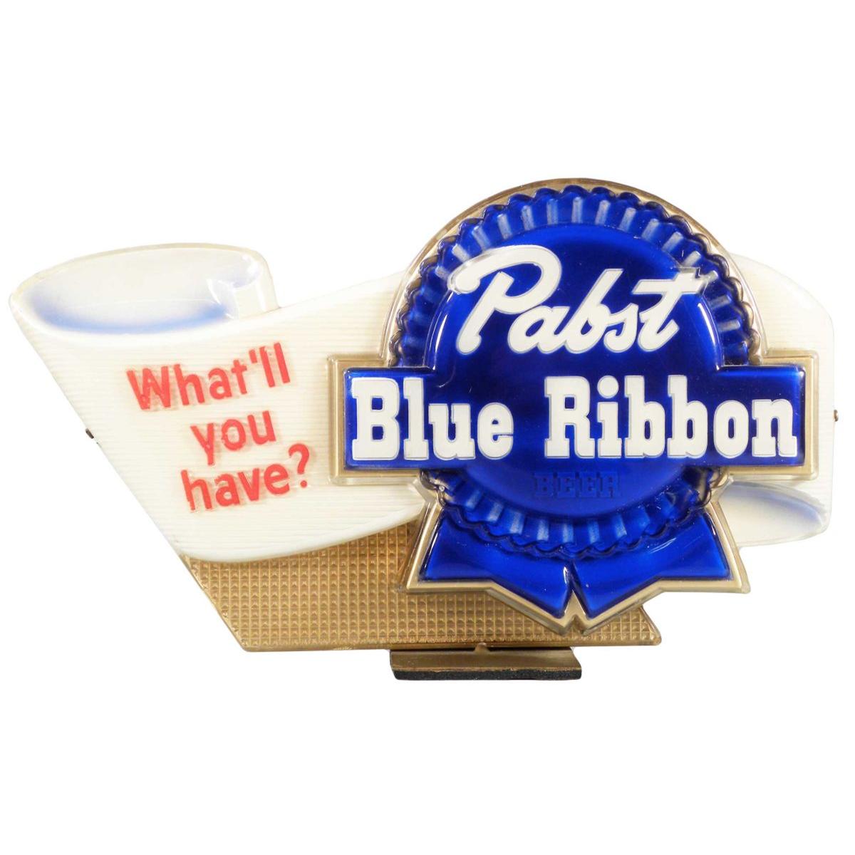 Pabst Blue Ribbon Beer Plastic Counter Display. Raymond M. Price & Assoc. Chesterton, IN. Some light surface scratches otherwise excellent condition. 11 X 6 3/4 X 1 1/4 inches.