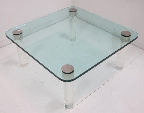 Lucite, chrome & glass. Approx. 16" H x 41.75" x 41.75".