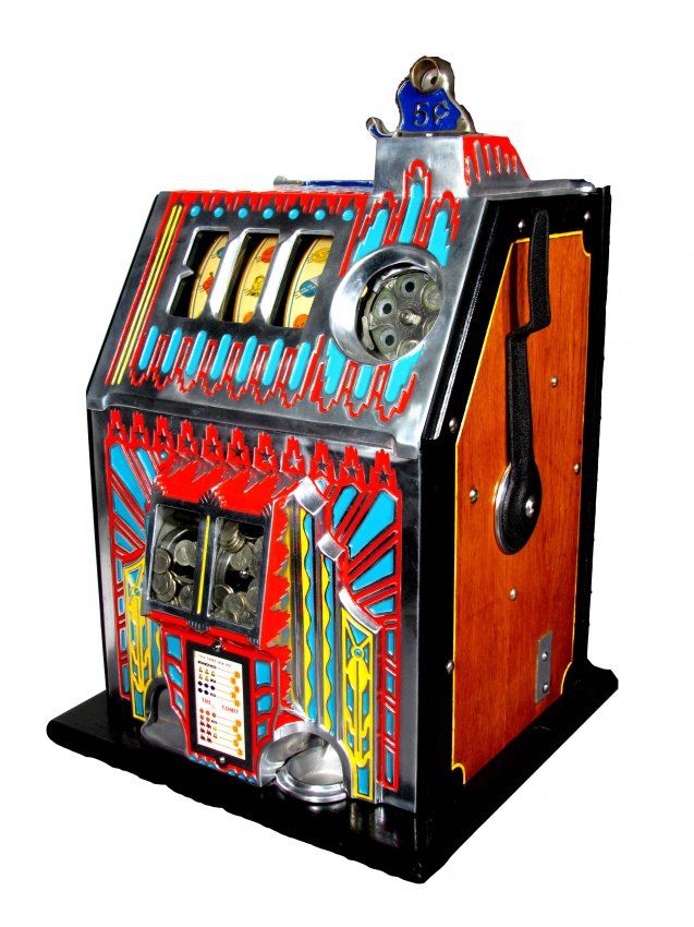 Pace Mfg. Co. Comet Five Cent Slot Machine. Fancy deco front. Professionally restored working condition. Comes with keys.