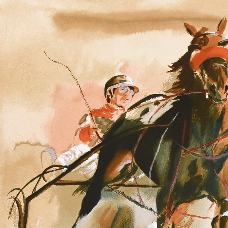 "Pacer" is a limited edition serigraph on paper by Mark King (1931-2014), numbered and hand signed by the artist. Includes Letter of Authenticity. Measures approx. 18" x 25" (border), 25" x 32.5" (image). ** Please note: due to the age of this piece there is wear in the white border area; particularly, patches of discoloration. **