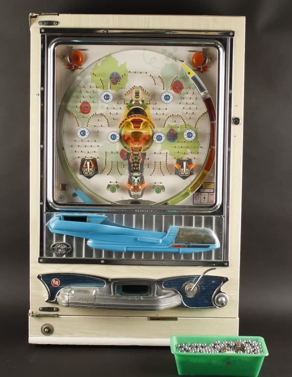 Electric game including balls and key. Partial function, lights come on and is missing back cover.