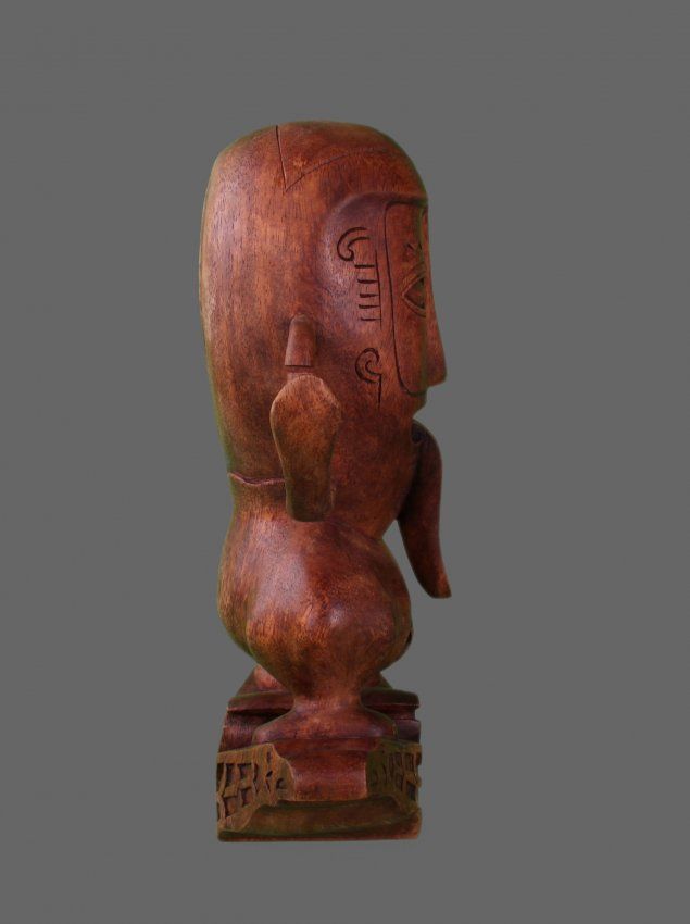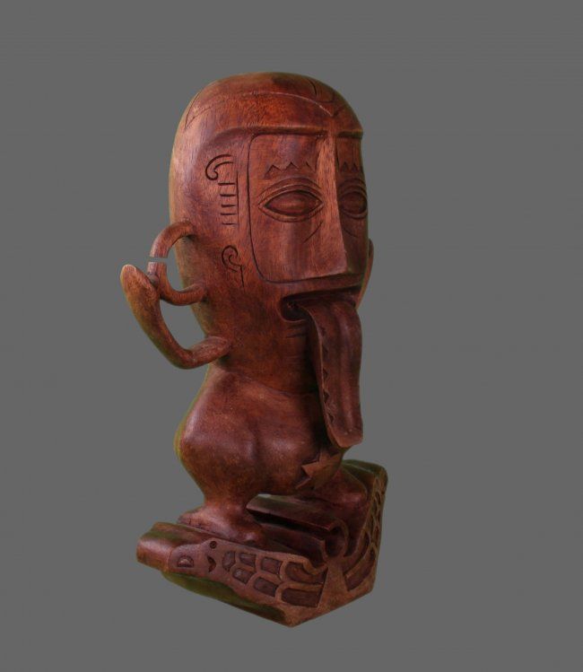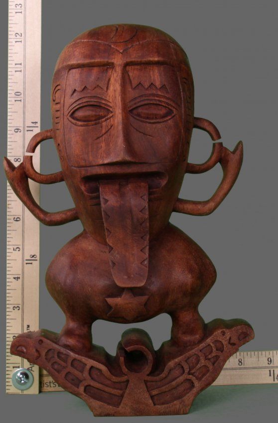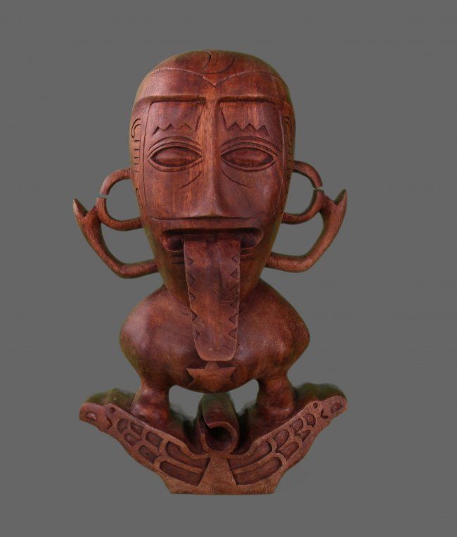 Pacific Island Wood Carving of a figure with tongue (Size: See Last Photo for Measurements)