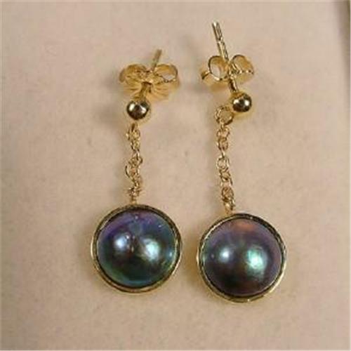New earrings, set with the unusual Pacific Paua pearl (blister pearls from the New Zealand paua shellfish, a type of abalone but with more intense colours in the shell). These pearls are farm grown inside the shell, and are not often seen. The colours are beautiful iridescent aqua, green, mauves and blue. The pearls are 8mm diameter each, and are mounted in 9ct yellow gold. A stunning pair of earrings.