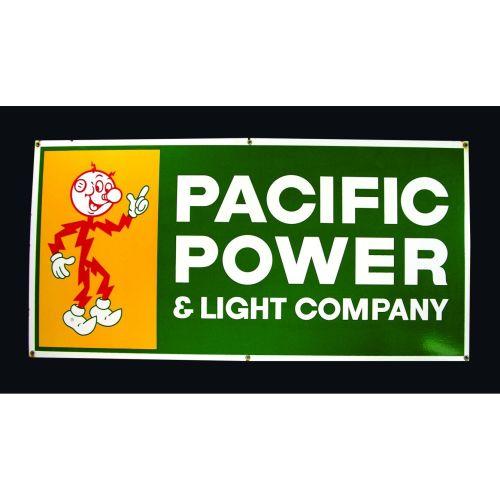 Pacific Power and Light Company Porcelain Sign, one sided. Depicting Ready Kilowatt. Near mint condition. 48 X 24 inches.