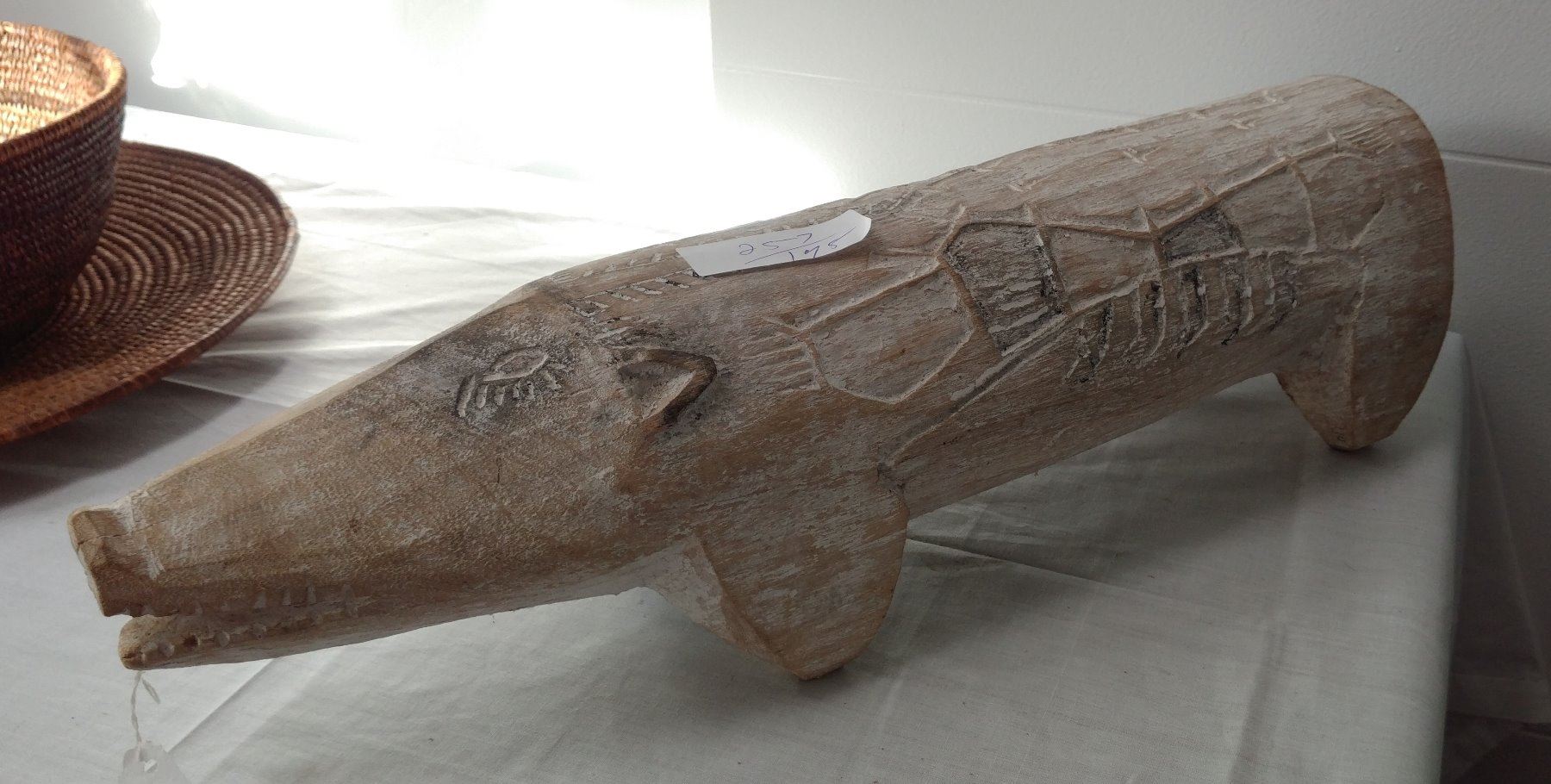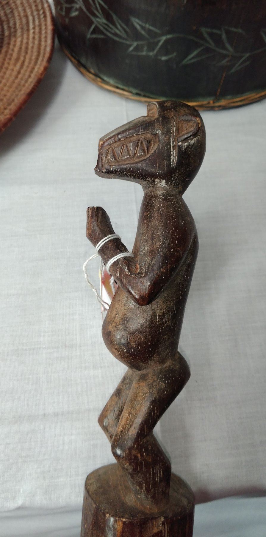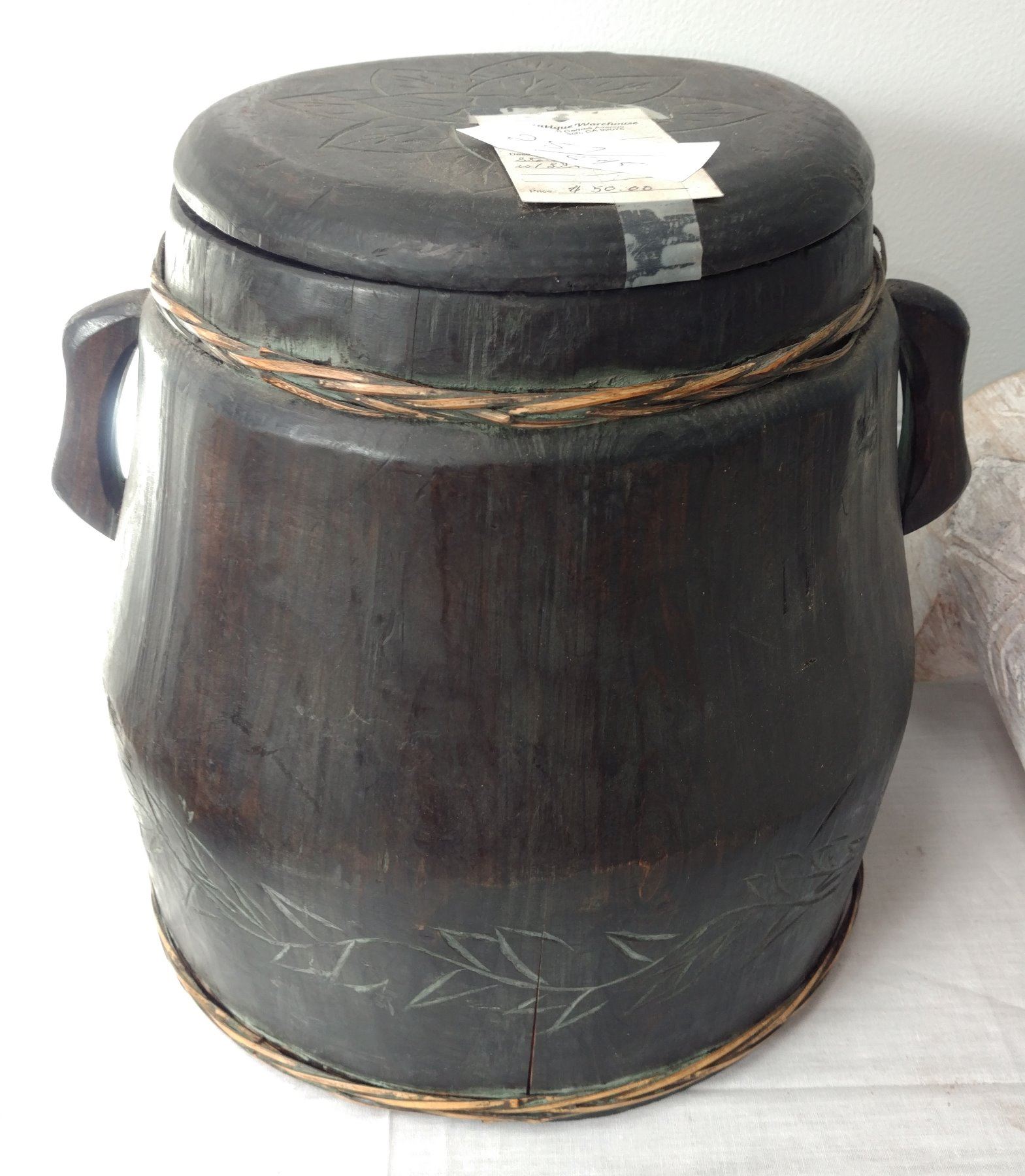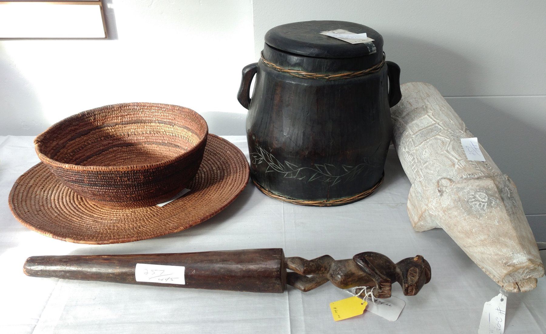 Pacific Rim Collection, c. 1940s. Made of wood and fiber, the pig carving measures 22", baskets are 12" and 17", effigy stick measures 22", and wooden jar measures 11". New Guinea. Condition: Good, see images. Shipping: $55.00 USA estimate only, due to size and weight, w/insurance and signature.