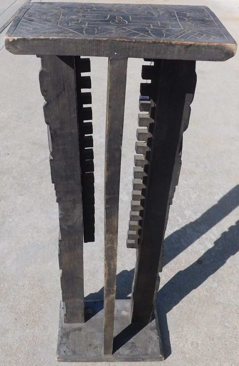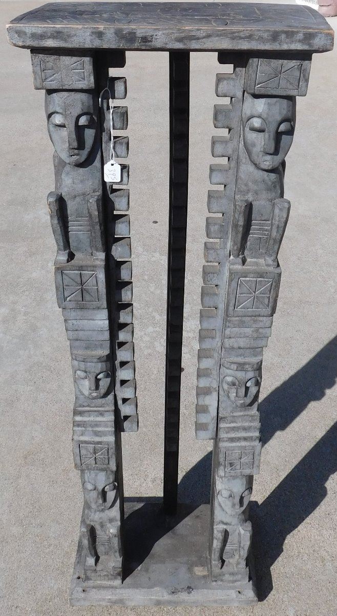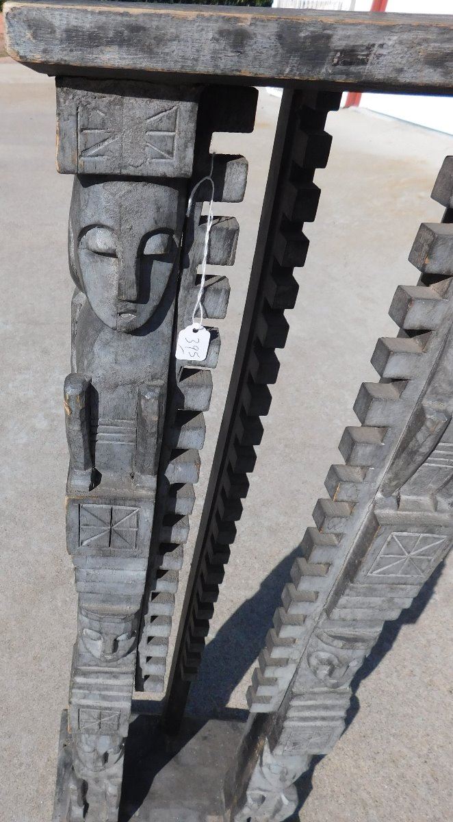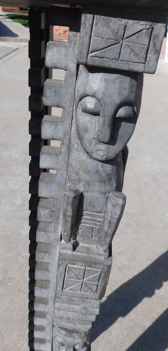 Pacific Rim Effigy Altar, circa 1940s. Made of wood and stained, the item is 38" x 13" x 8". Likely from Indonesia. Lizard effigy on top of table. Condition: Some stains and scratches, totem poles on front, see images. Shipping: $100.00 USA estimate only, due to size and weight w/insurance and signature. Foreign bidders will be responsible for the export of this item.