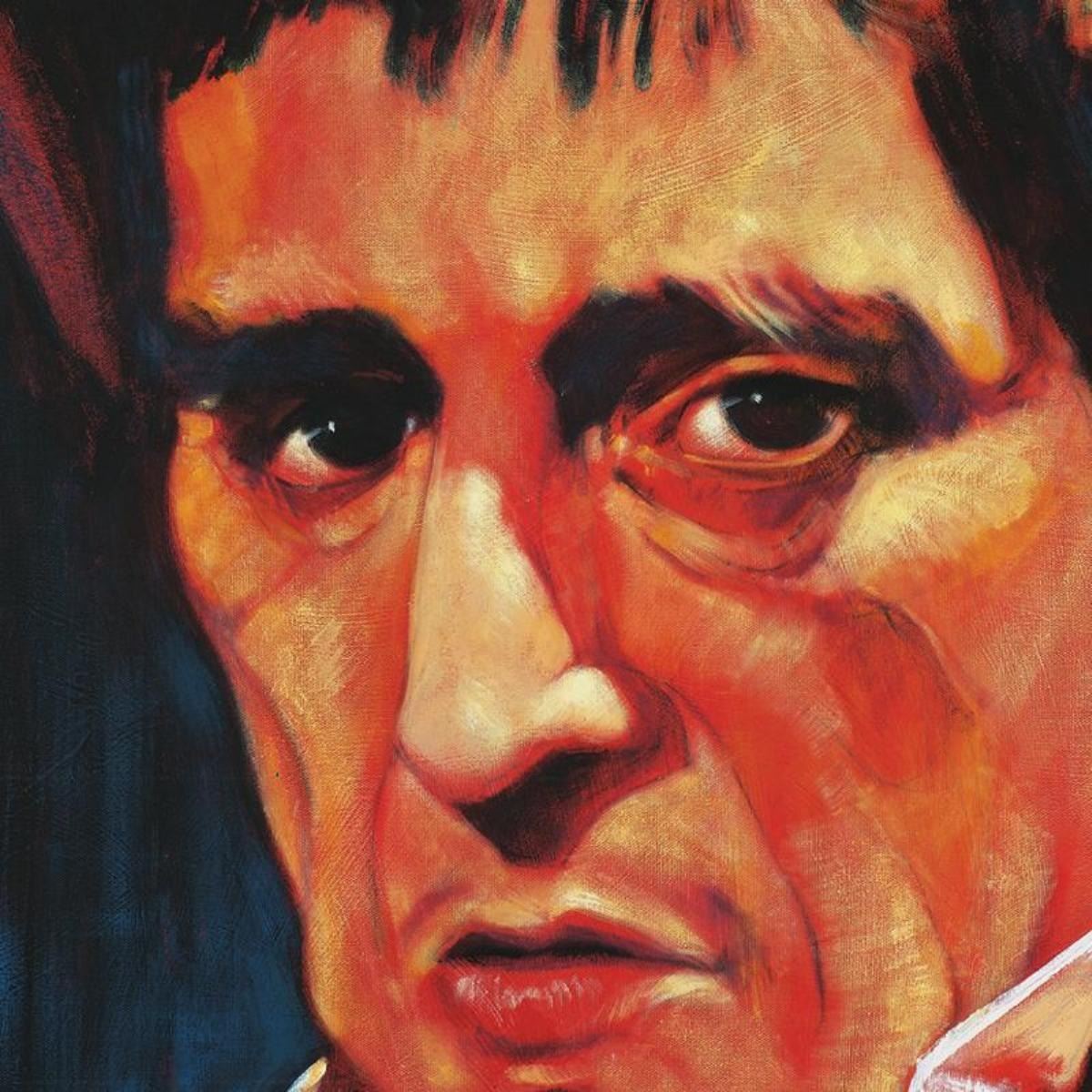 With bright colors and expressive lines, Stephen Fishwick puts a unique spin on pop culture portraits. "Pacino" is a limited edition giclee on stretched canvas, numbered and bears the artist's authorized signature. This piece comes gallery wrapped! Includes Letter of Authenticity. Measures approx. 16" x 20" (image).