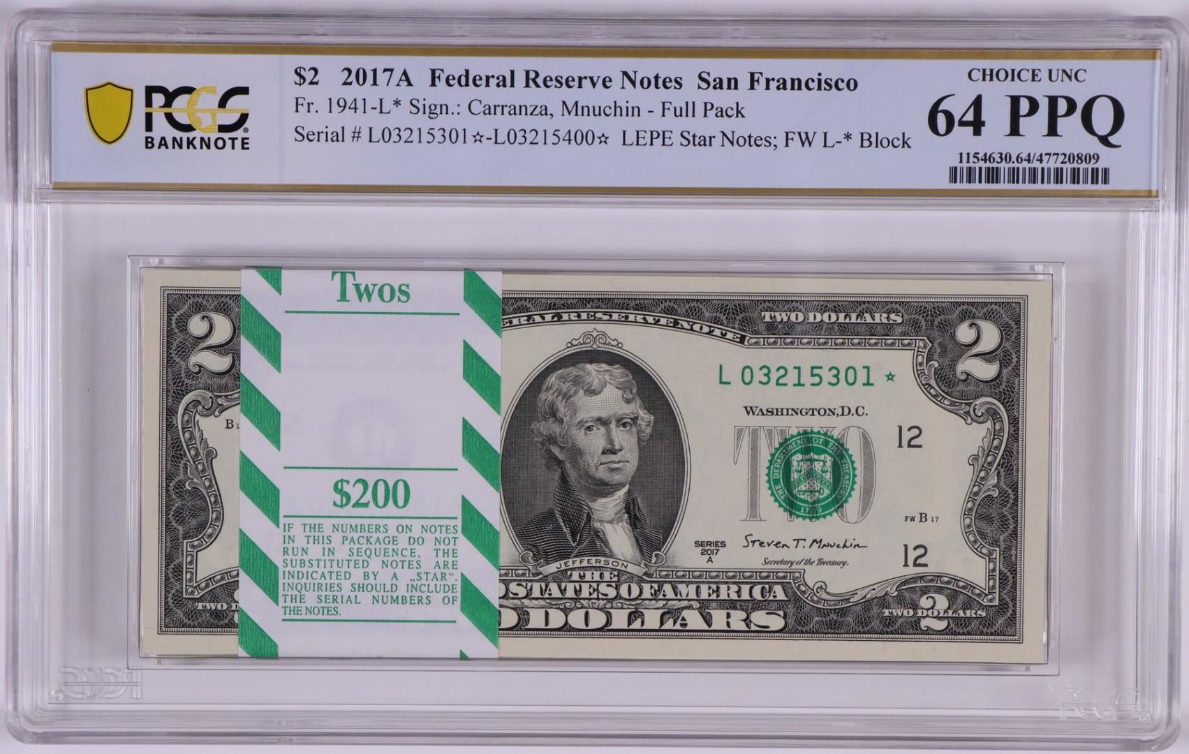 Pack 2017A $2 Federal Reserve STAR Notes SF Fr.1941-L* PCGS Choice Uncirculated 64PPQ