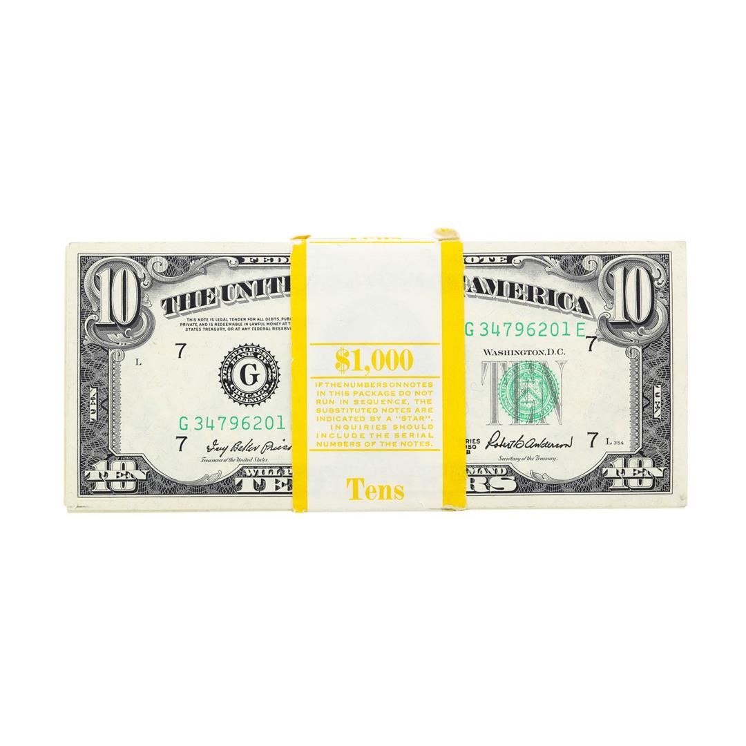 One Pack of (100) 1950B $10 Federal Reserve Notes.