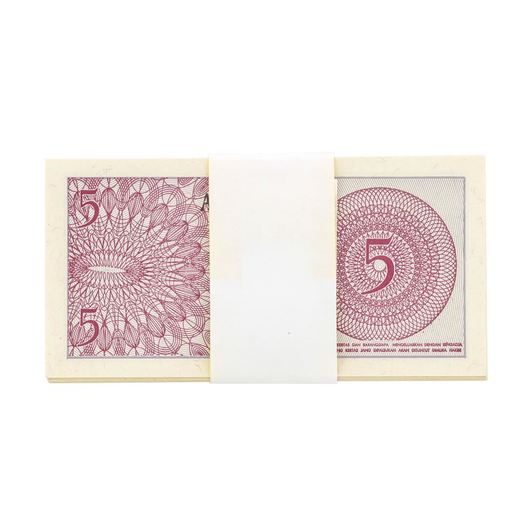 One Pack of (100) 1964 5 Sen Indonesia Uncirculated Notes.