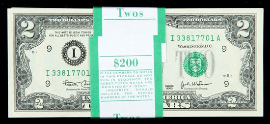 Pack of 100 2003, $2 Federal Reserve Notes. Minneapolis