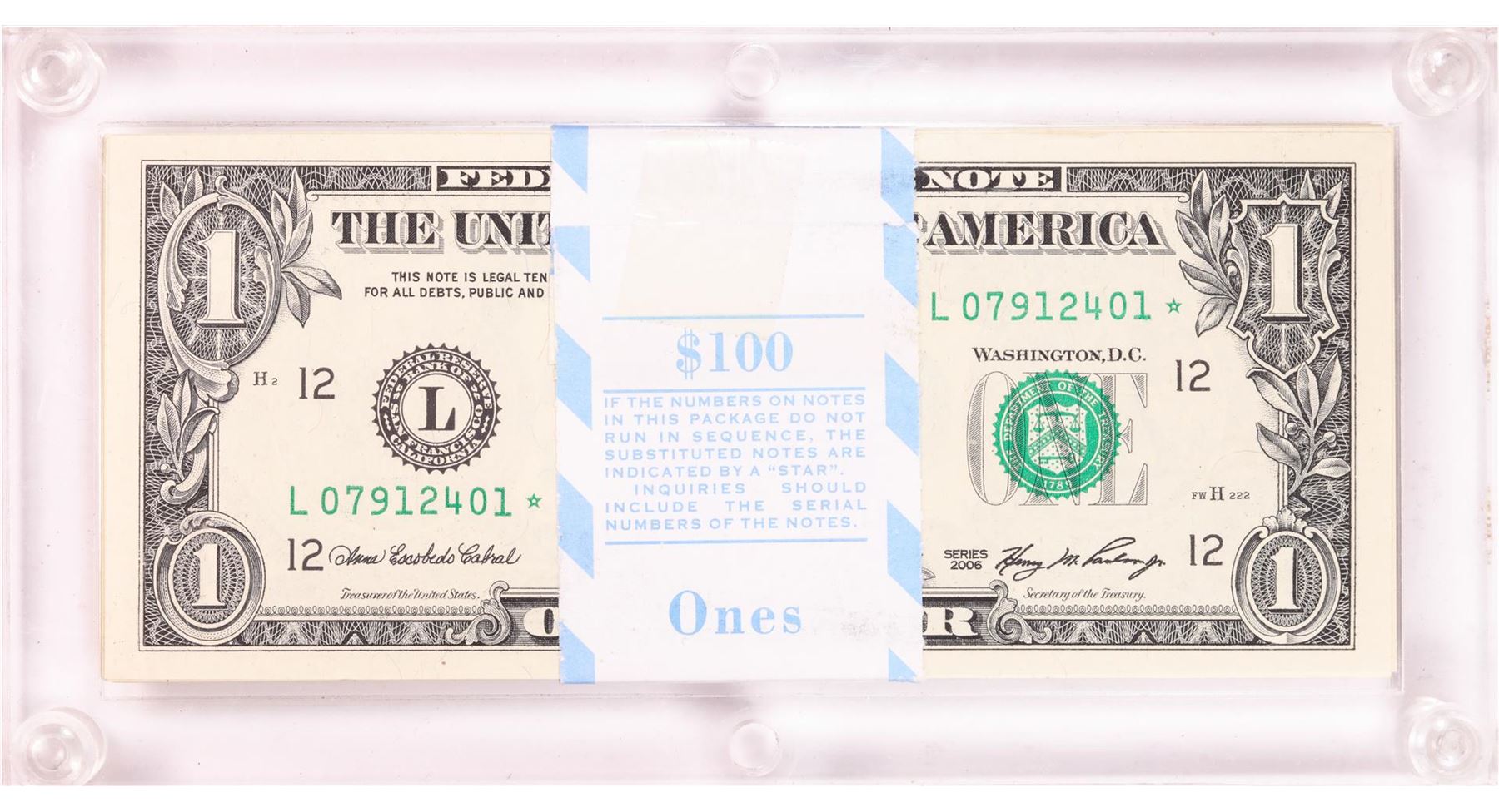 One Pack of (100) 2006 $1 Federal Reserve STAR Notes San Francisco in Capital Holder.