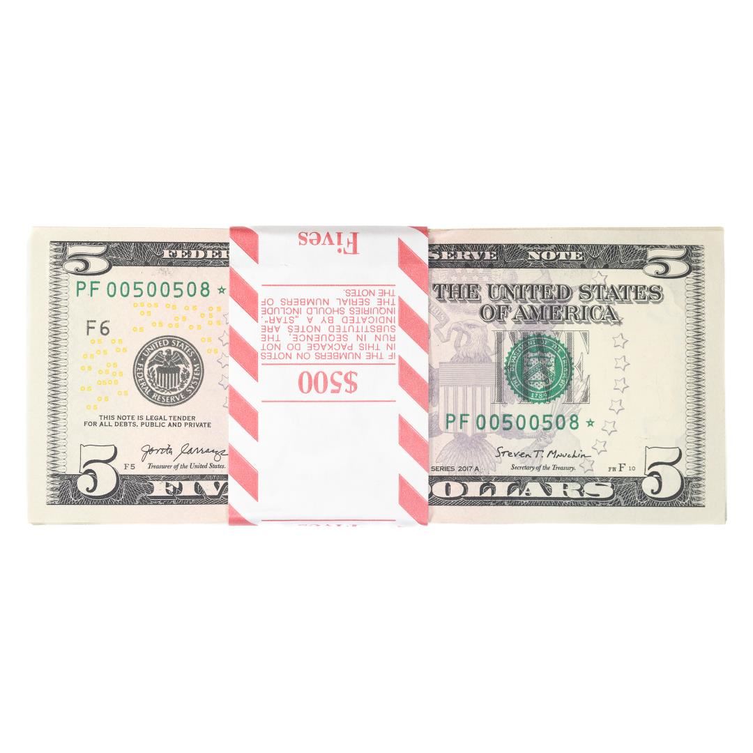 One Pack of (100) 2017A $5 Federal Reserve STAR Notes Atlanta - Mostly Consecutive.