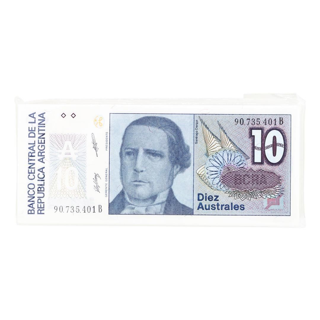 One Pack of (100) Argentina 10 Australes Uncirculated Notes.