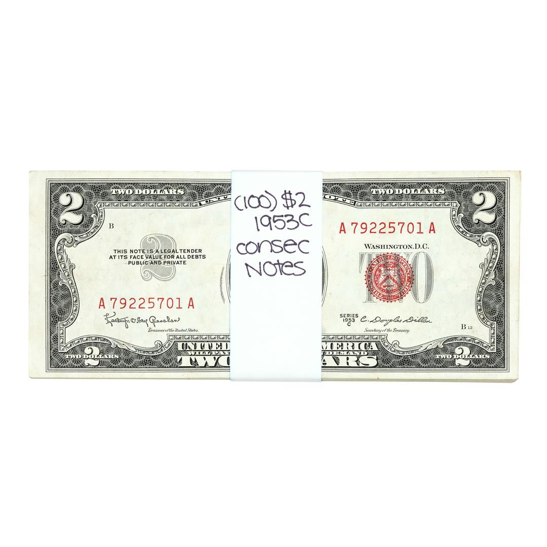 One Pack of (100) Consecutive 1953C $2 Legal Tender Notes.