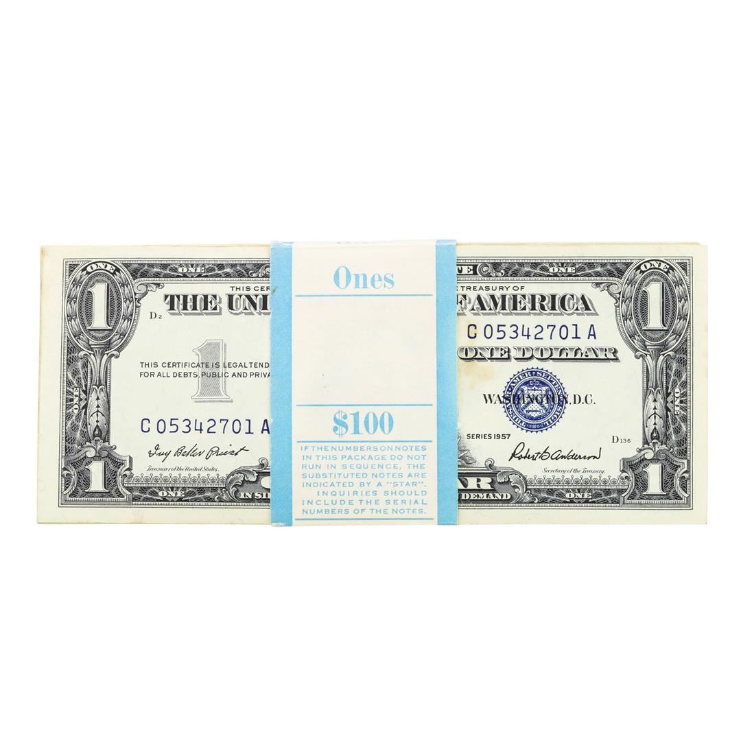 One Pack of (100) Consecutive 1957 $1 Silver Certificate Notes.