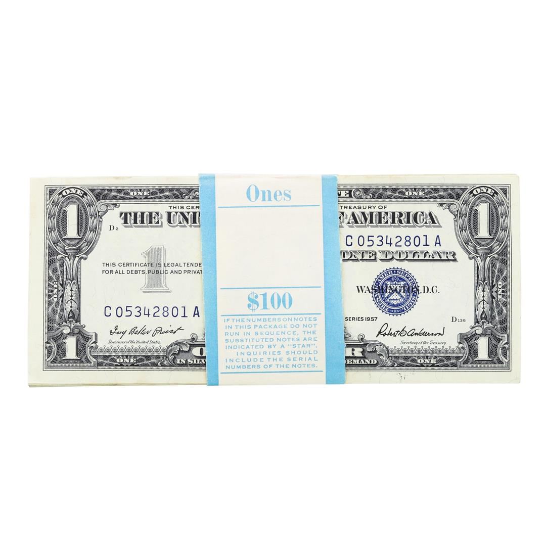 One Pack of (100) Consecutive 1957 $1 Silver Certificate Notes.