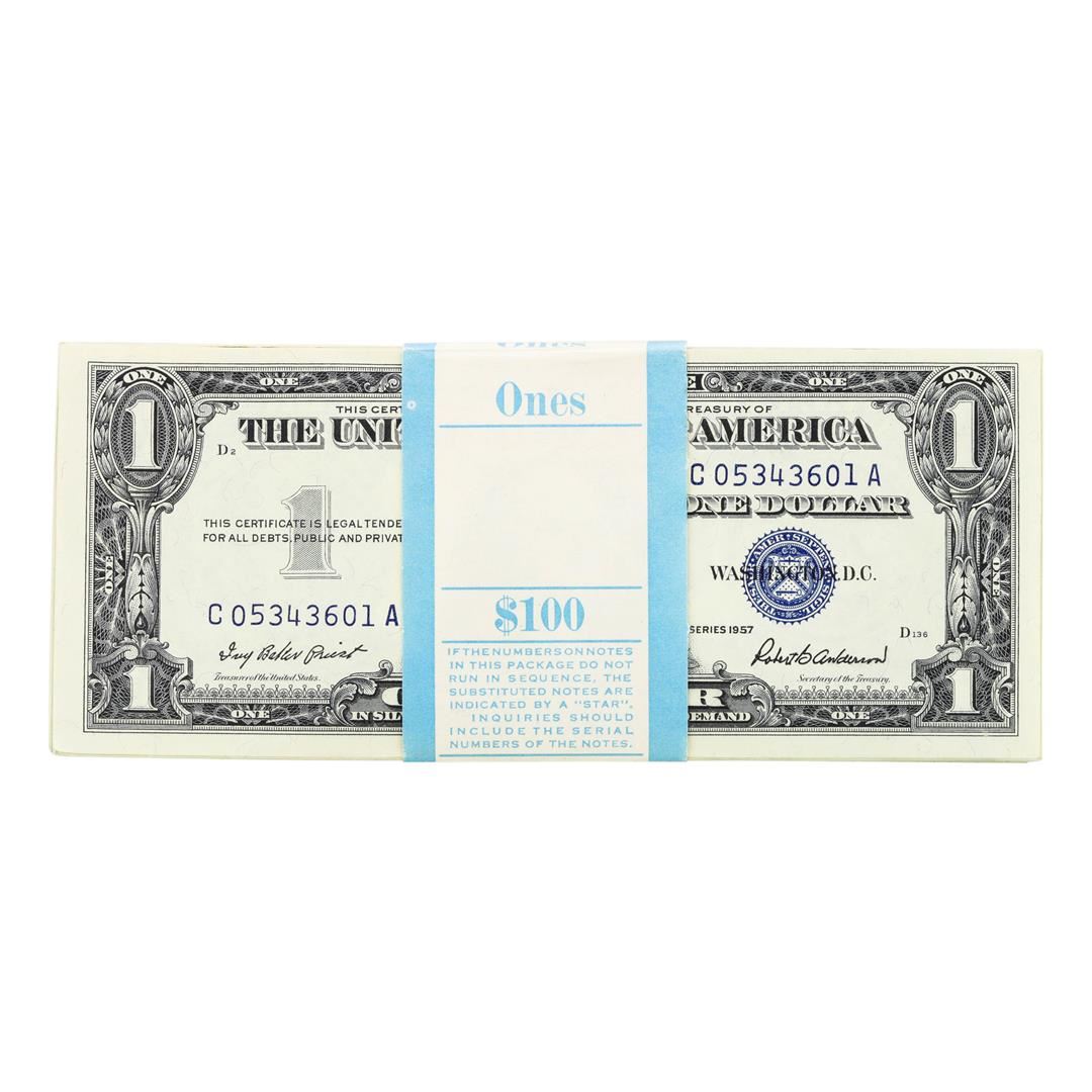 One Pack of (100) Consecutive 1957 $1 Silver Certificate Notes.