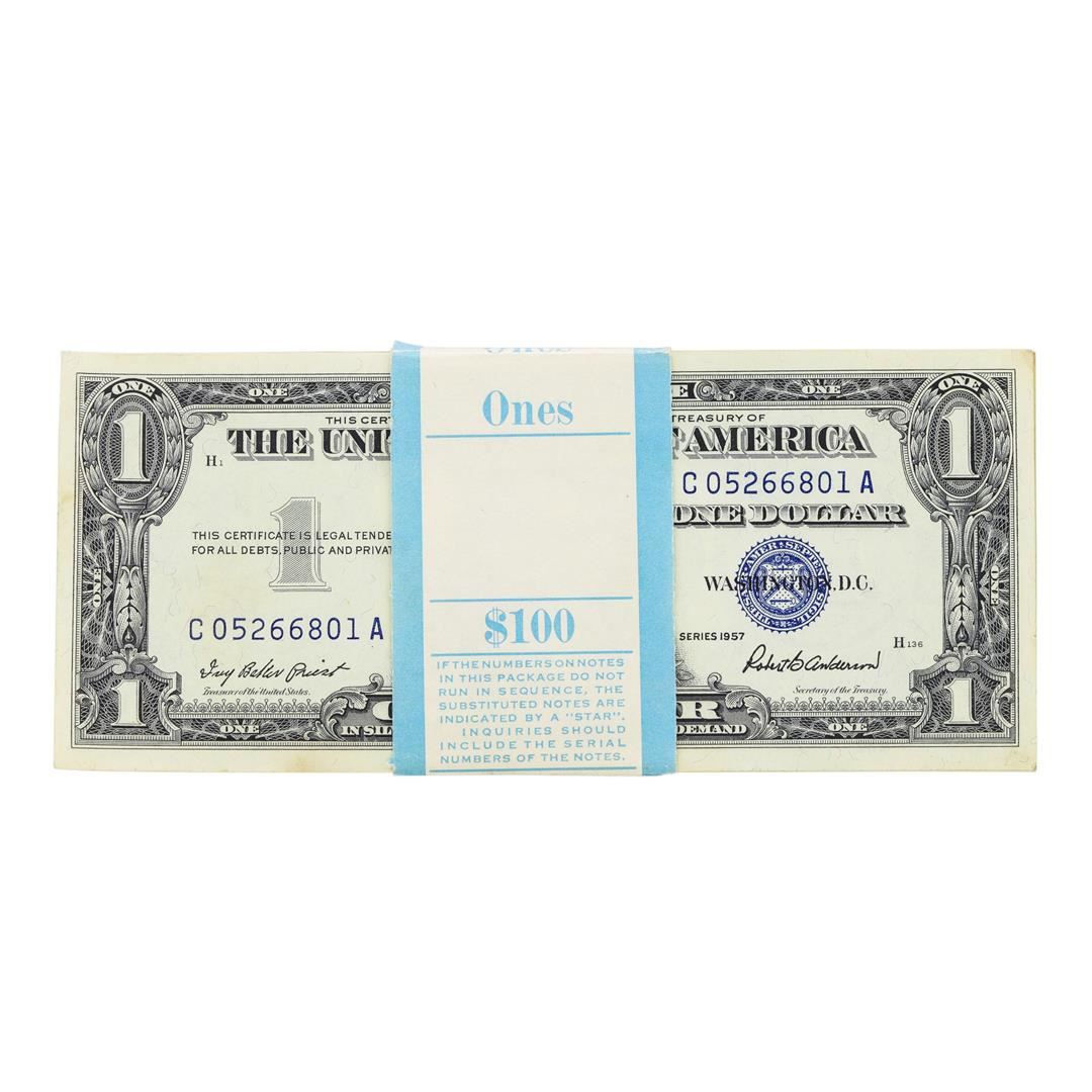 One Pack of (100) Consecutive 1957 $1 Silver Certificate Notes.