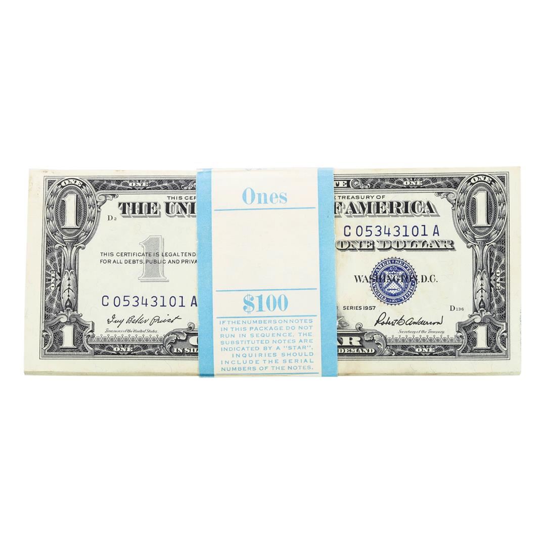 One Pack of (100) Consecutive 1957 $1 Silver Certificate Notes.