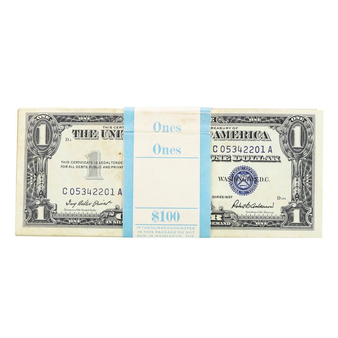 One Pack of (100) Consecutive 1957 $1 Silver Certificate Notes.