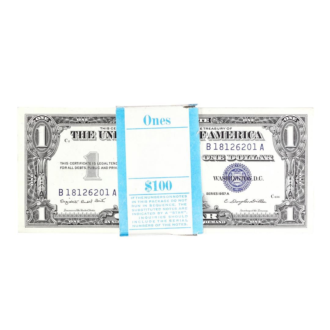 One Pack of (100) Consecutive 1957A $1 Silver Certificate Notes.