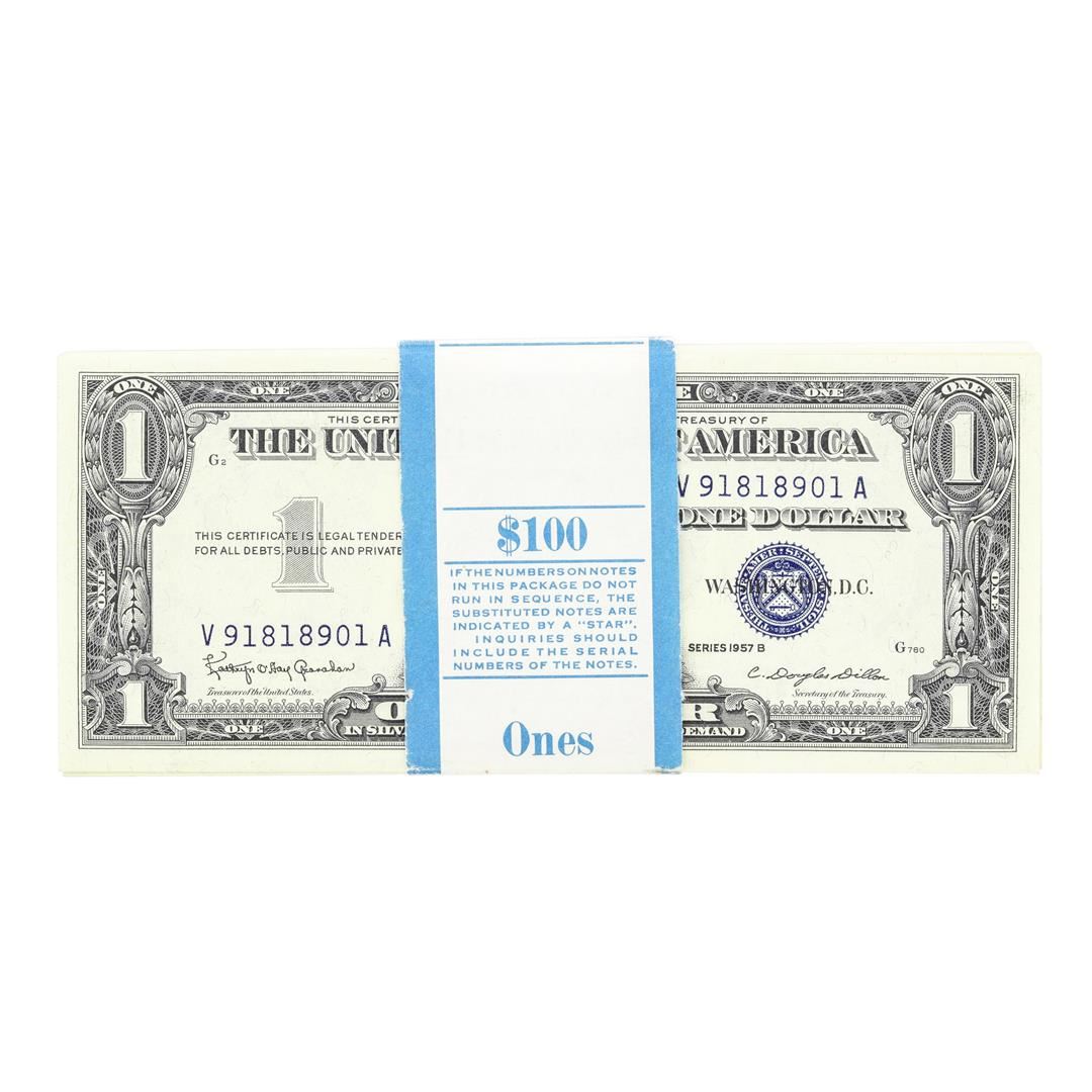 Pack of (100) Consecutive 1957B $1 Silver Certificate Notes Uncirculated