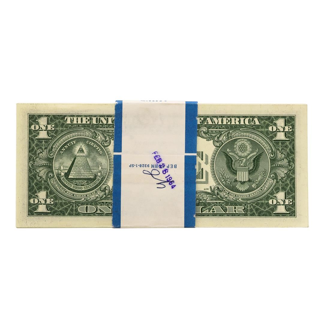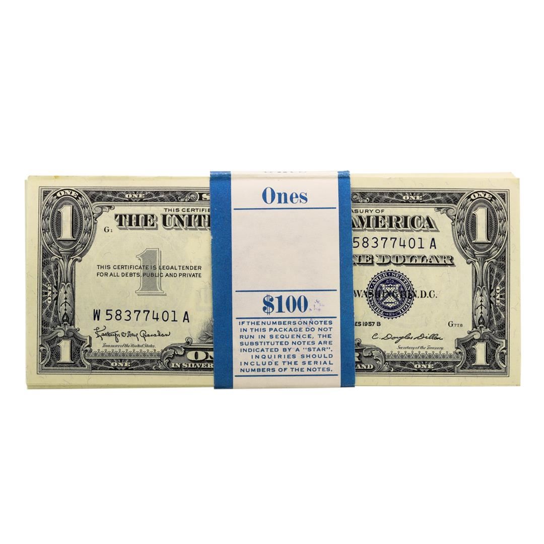 One Pack of (100) Consecutive 1957B $1 Silver Certificate Notes.