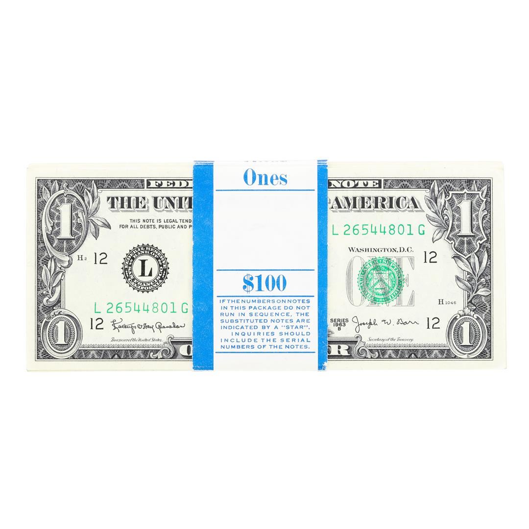 Pack of (100) Consecutive 1963B $1 Federal Reserve Notes Uncirculated San Franci