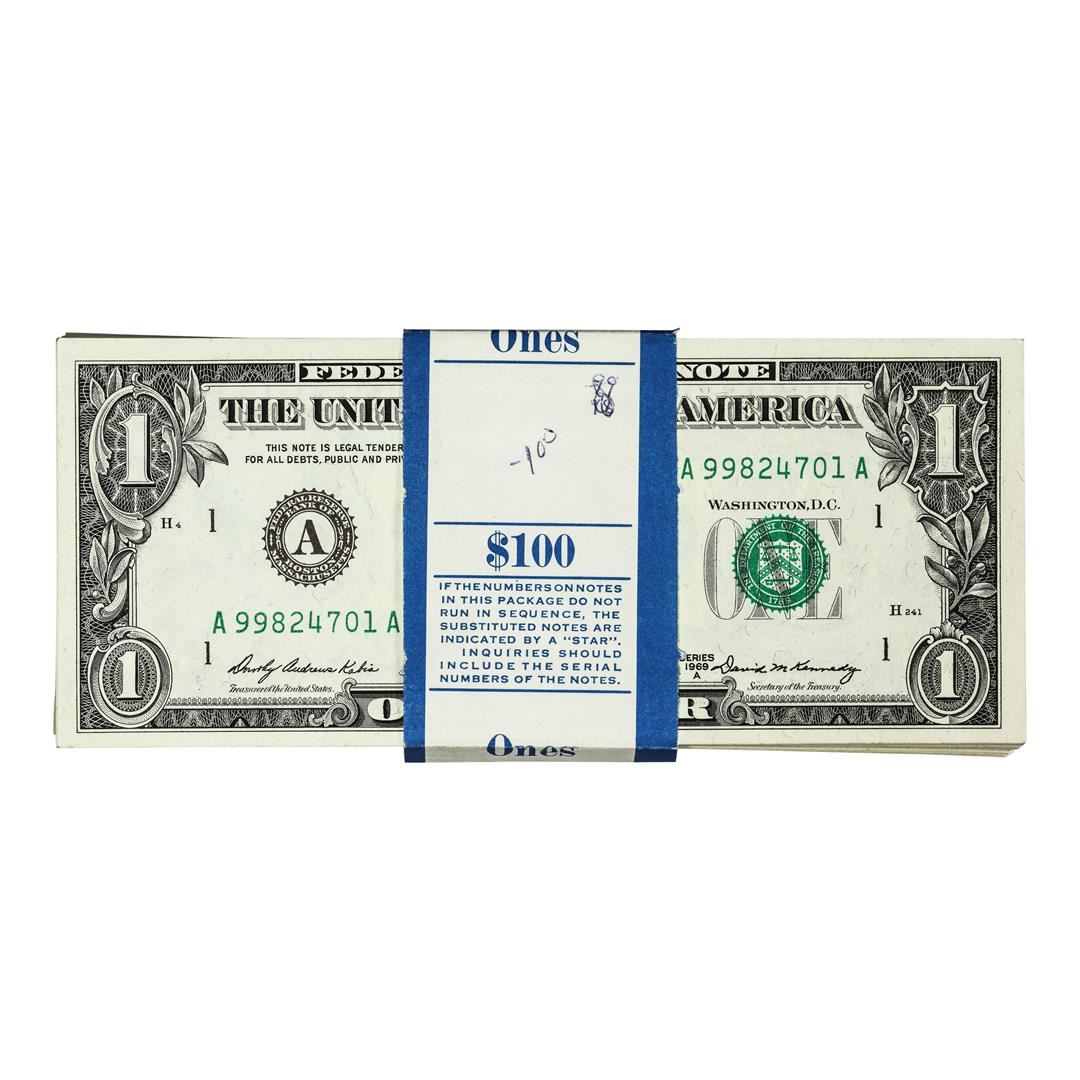 Pack of (100) Consecutive 1969A $1 Federal Reserve Notes Boston