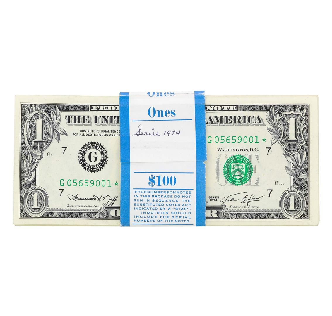 Pack of (100) Consecutive 1974 $1 Federal Reserve STAR Notes Uncirculated Chicag