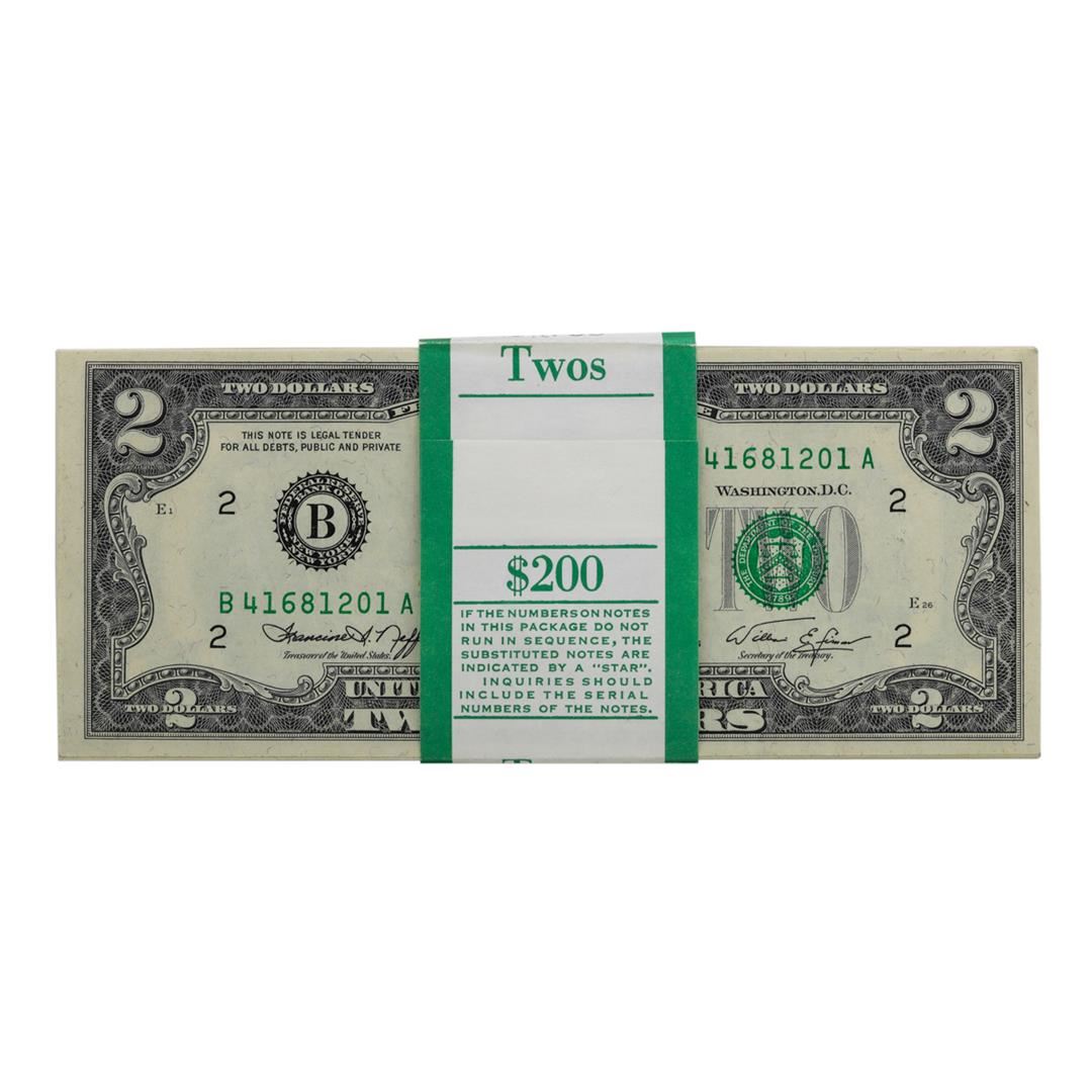 Pack of (100) Consecutive 1976 $2 Federal Reserve Notes New York