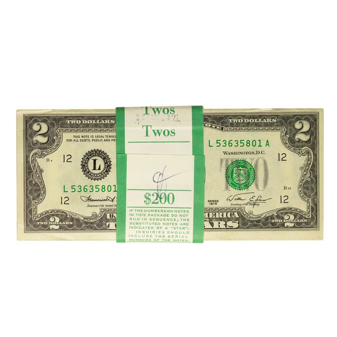 Pack of (100) Consecutive 1976 $2 Federal Reserve Notes San Francisco